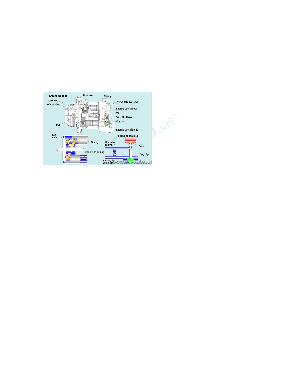 suất cao tác dụng vào buồng đĩa chéo. Kết quả là áp suất tác dụng sang bên phải