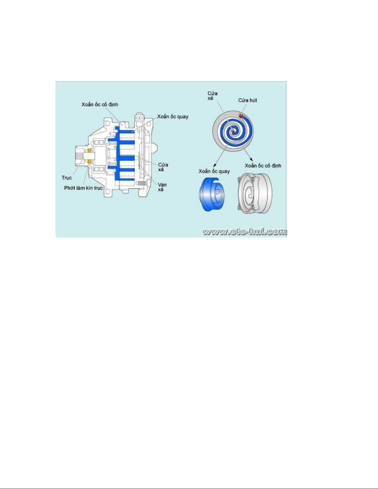 Máy nén này gồm có một đường xoắn ốc cố định và một đường xoắn ốc quay tròn.