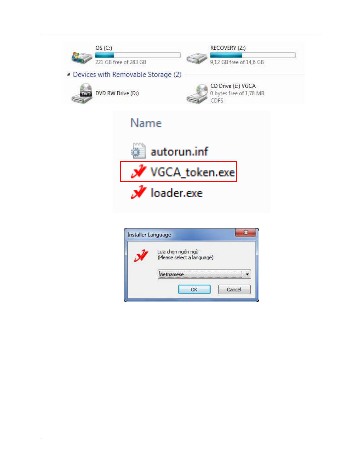Kích đúp chuột vào tệp VGCA_token.exe để cài đặt