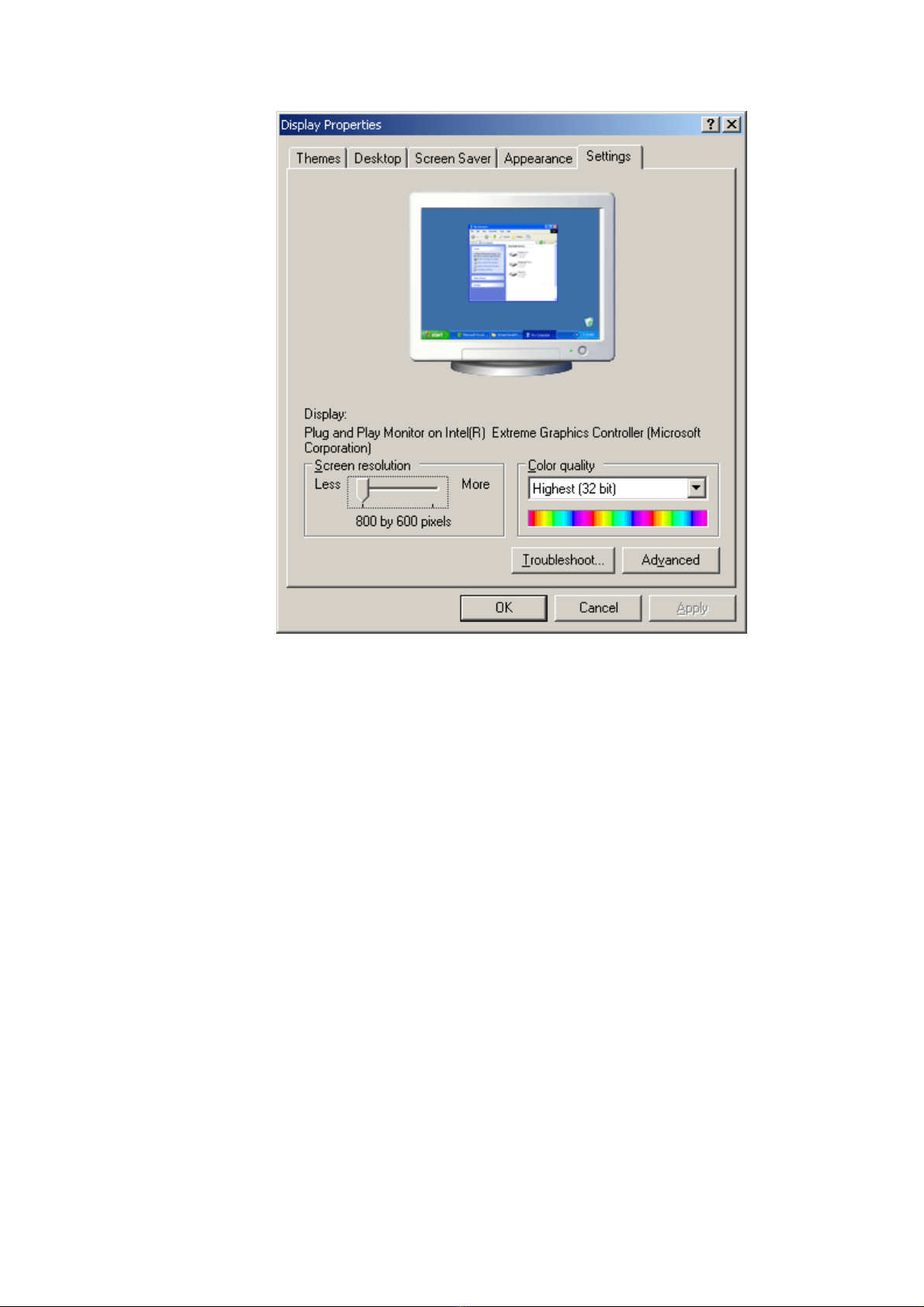 nhỏ thì cần phải đặt lại về độ phân giải 800x600.