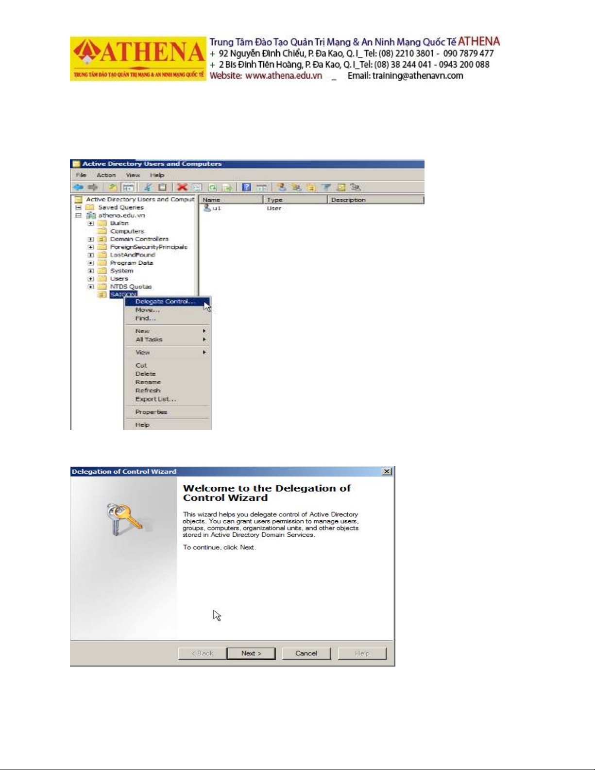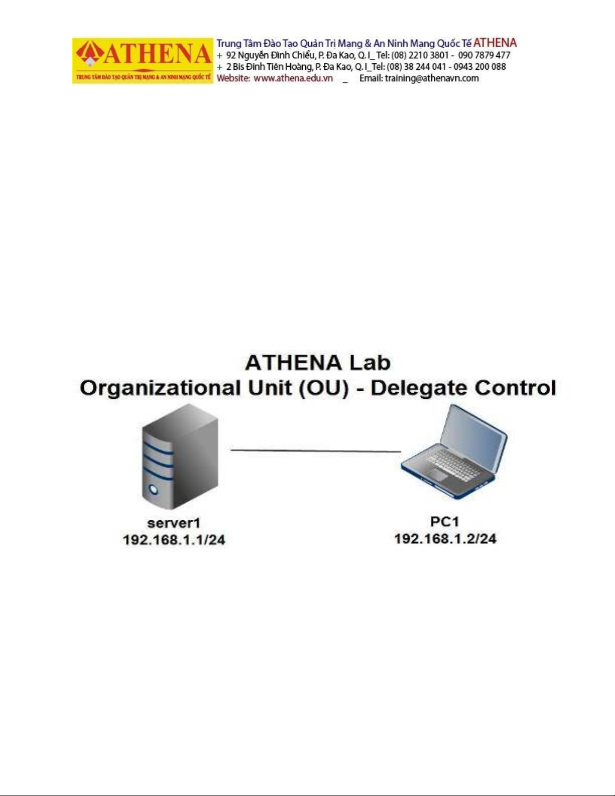 - Mục tiêu cuối cùng: cấu hình thành công các vấn đề về Organization Unit và Delegate Control.