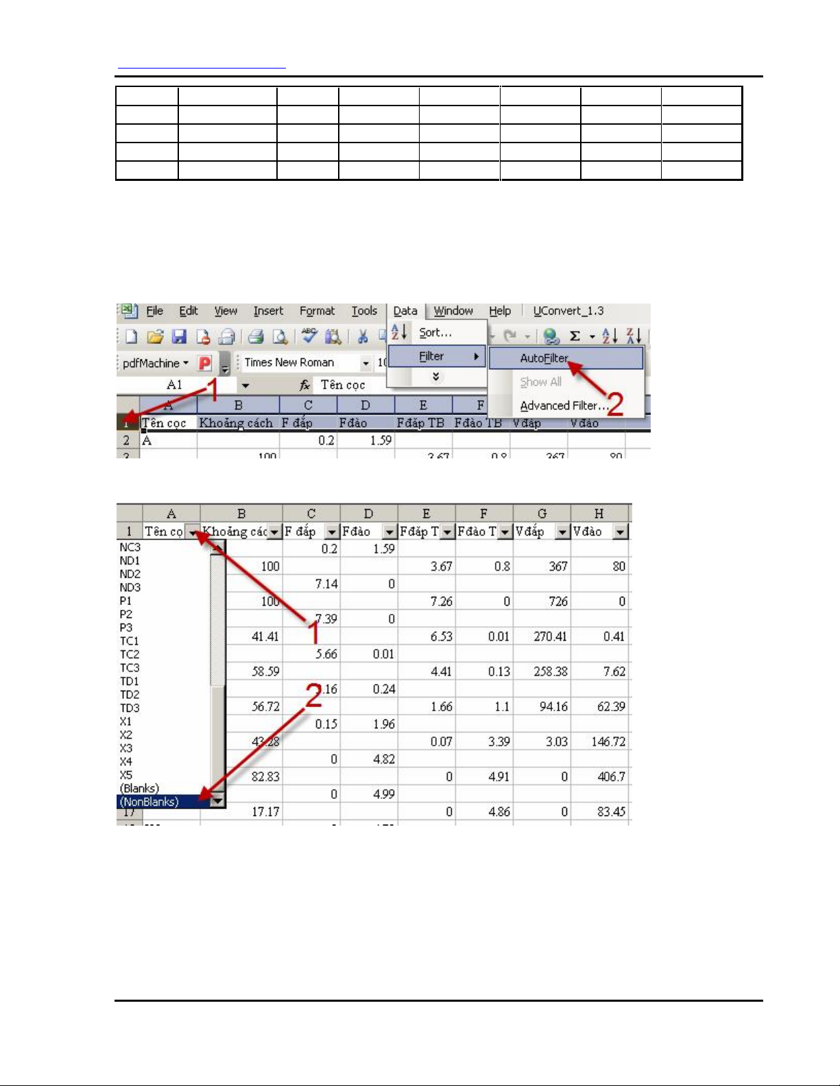 (ví dụ ở ðây là loại bỏ các ô trống giữa các hàng sử dụng autofilter