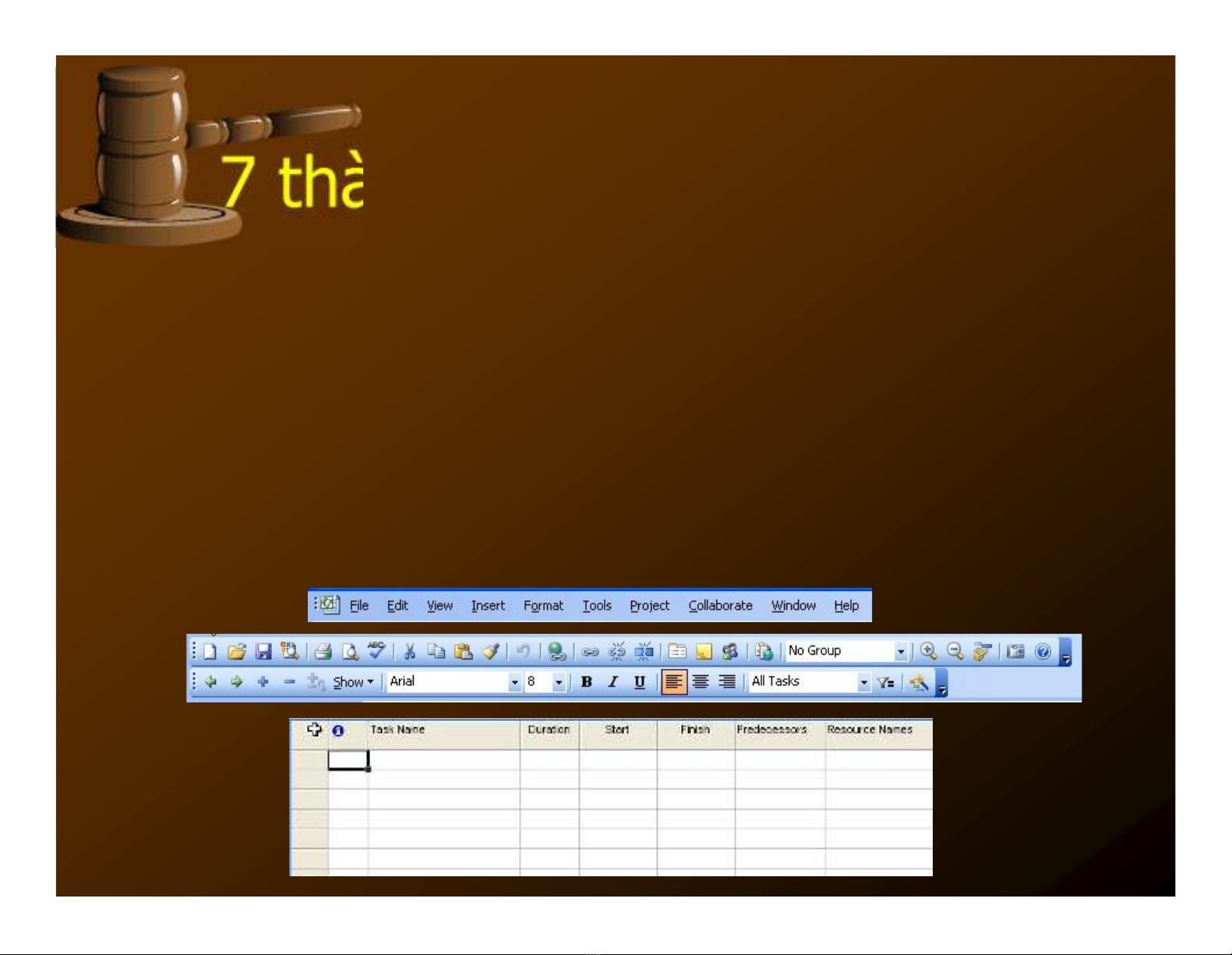 các ứng dụng Word, Excel thì khai thác và sửdụng Menu của Project không khó khăn.