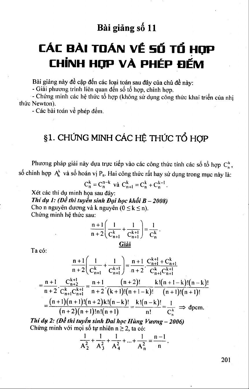 Tài liệu ôn toán - Chuyên đề 11 - Tổ hợp, chỉnh hợp và phép đếm