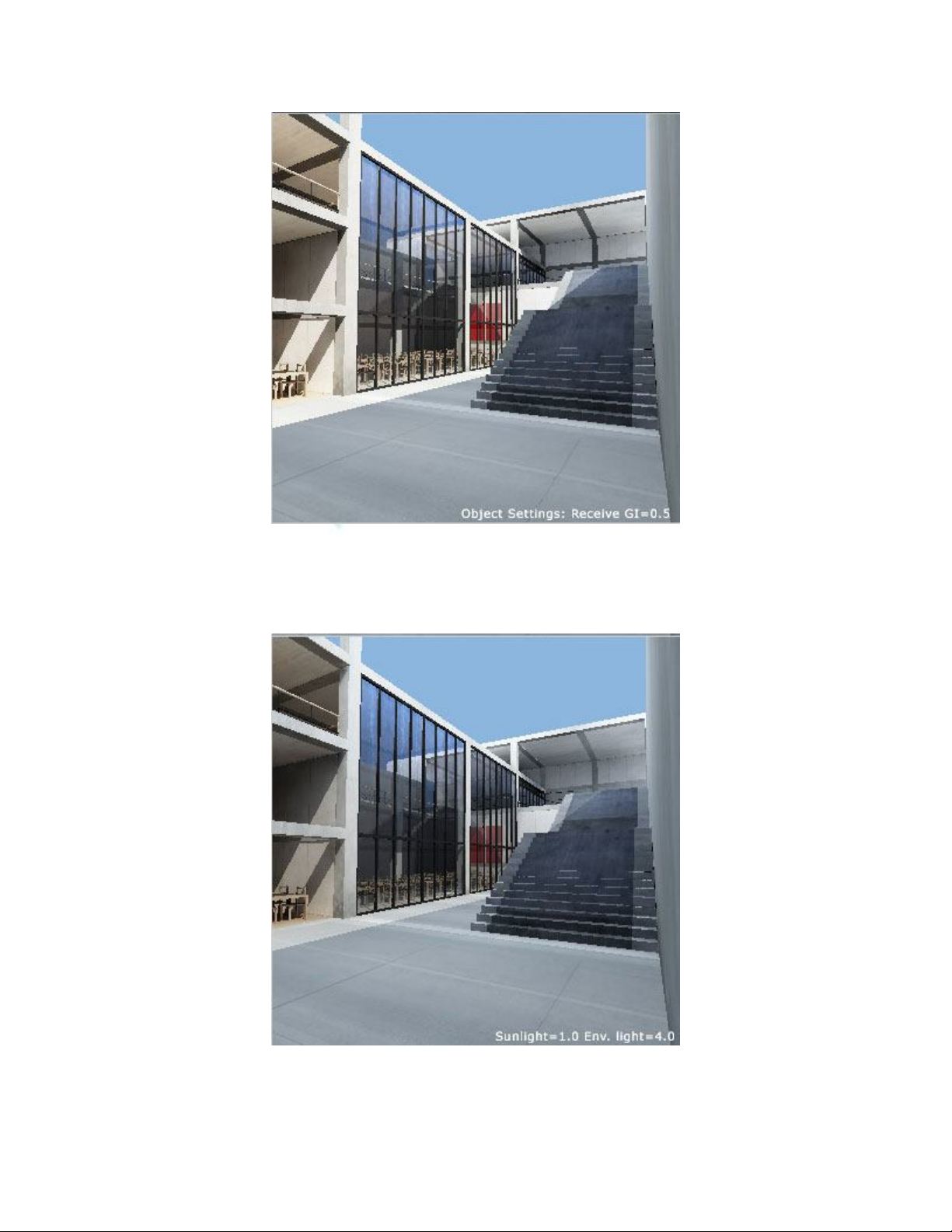 Chú ý: Tôi cũng đã giảm giá trị của Sunlight và thay đổi Receive/General setting đối với các đối tượng khác nhau. Các