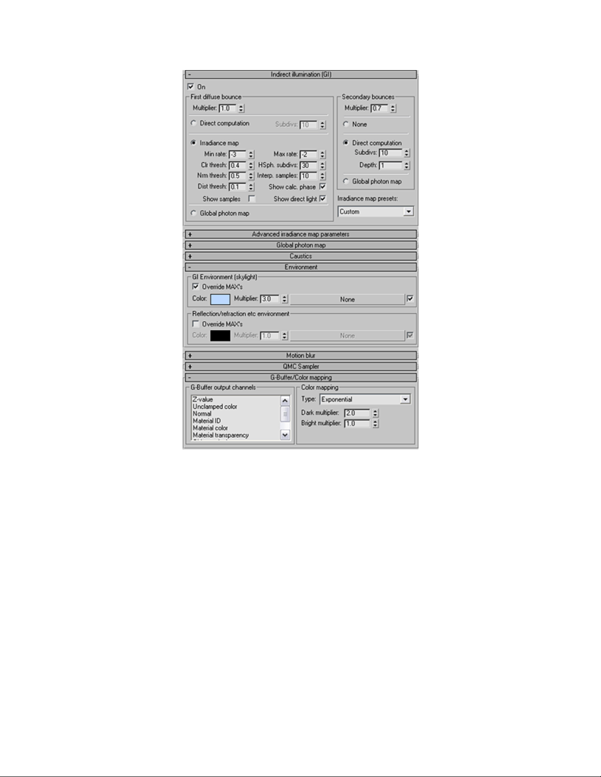 được thêm vào và sử dụng 1 cách tương tự với Logarthimic Exposure Control trong Lightscape và 3ds max5.