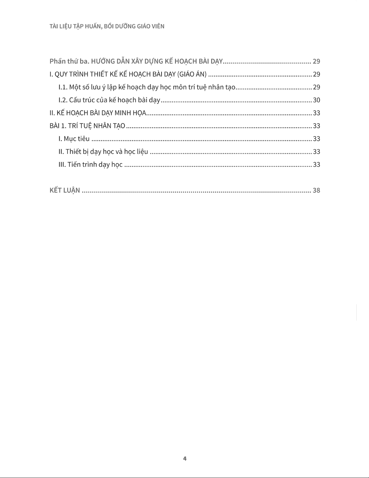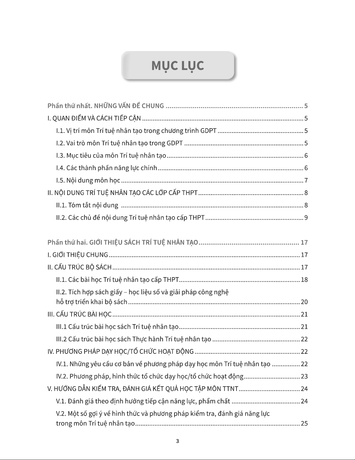 Tài liệu tập huấn này cung cấp cái nhìn tổng quan toàn diện về môn Trí tuệ nhân tạo (AI) cấp THPT, được thiết kế để hỗ trợ giáo viên trong việc triển khai chương trình GDPT 2018. Phần đầu tiên trình bày những vấn đề chung, bao gồm vị trí, vai trò, và mục tiêu của môn học, đồng thời phác thảo các thành phần năng lực chính mà học sinh cần đạt được, như học vấn AI, công nghệ AI và khoa học AI. Môn học nhấn mạnh việc phát triển tư duy phản biện, sáng tạo, kỹ năng giải quyết vấn đề và phẩm chất công dân số thông qua việc ứng dụng AI một cách an toàn và có trách nhiệm. Nội dung chính của tài liệu chi tiết hóa chương trình học theo từng cấp lớp, từ lớp 10 đến lớp 12. Học sinh lớp 10 sẽ được giới thiệu về các khái niệm cơ bản của AI tạo sinh (Generative AI), vai trò của dữ liệu, mô hình ngôn ngữ lớn (LLM) và kỹ thuật prompt, cũng như nhận diện các vấn đề đạo đức liên quan. Lớp 11 đi sâu vào các kỹ thuật nâng cao hơn với LLM và RAG, thực hành đánh giá, chỉnh sửa nội dung AI tạo và phát triển sản phẩm. Lớp 12 tập trung vào việc xây dựng và triển khai sản phẩm AI, nghiên cứu học máy, hồi quy, phân loại và các công cụ AI Agent. Tài liệu cũng đề cập đến phương pháp dạy học hiệu quả và các hình thức kiểm tra, đánh giá theo định hướng phát triển năng lực, phẩm chất của học sinh. Giá trị ứng dụng của tài liệu là định hướng rõ ràng cho giáo viên về cách tổ chức giảng dạy, phát triển kế hoạch bài dạy và sử dụng học liệu, đảm bảo học sinh được trang bị năng lực AI toàn diện, từ hiểu biết nguyên lý đến ứng dụng thực tiễn và phát triển công nghệ AI một cách có đạo đức.