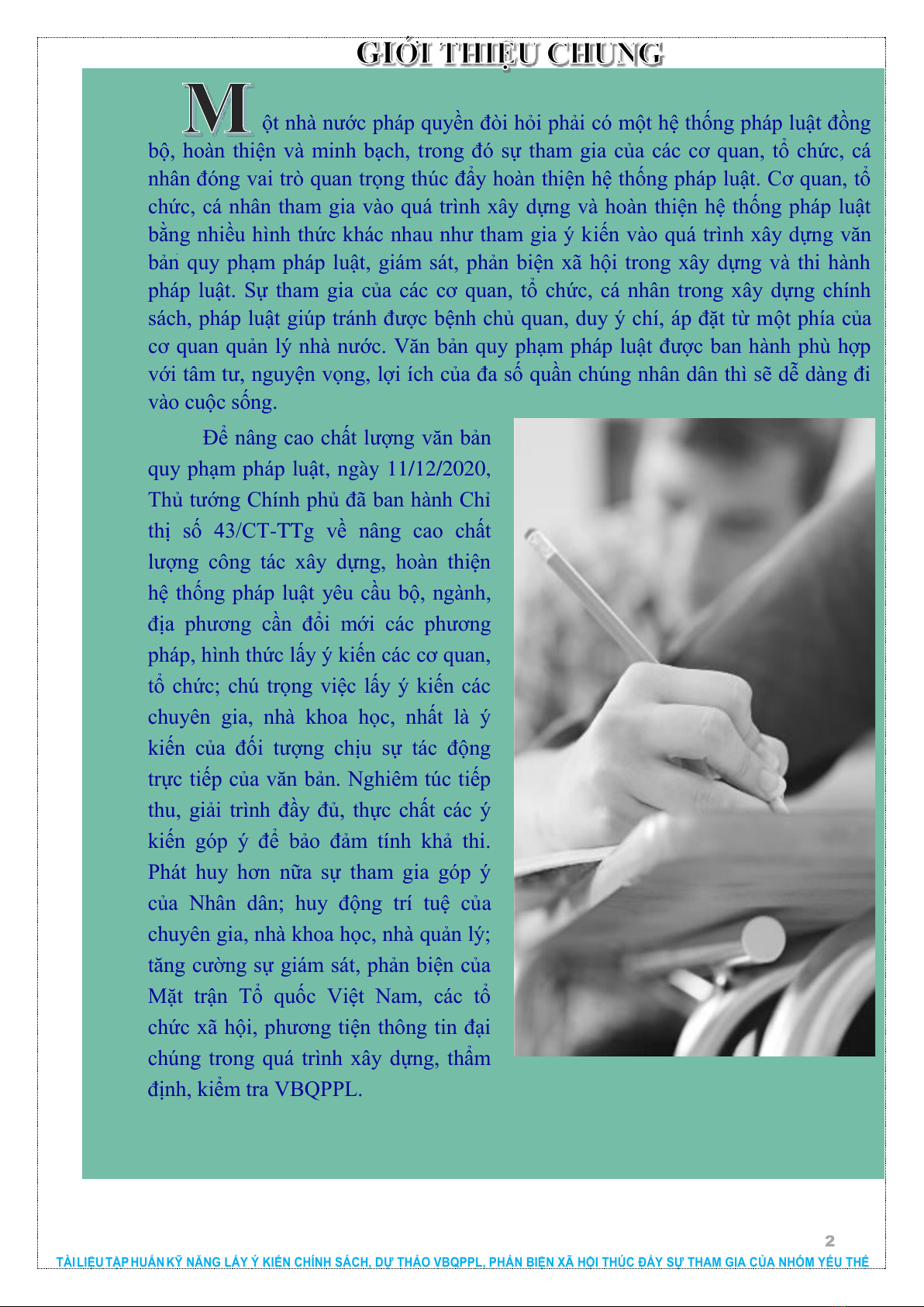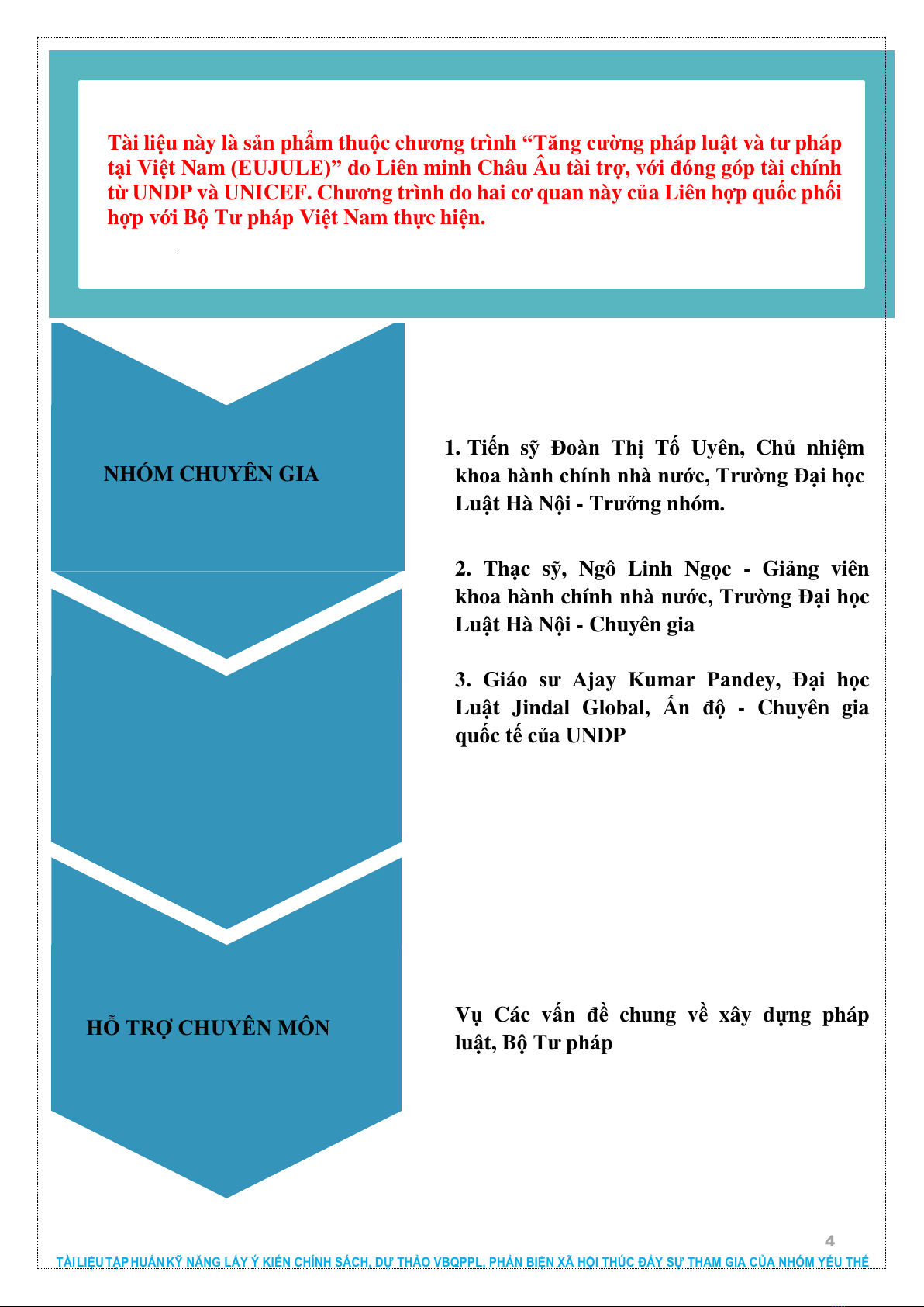 TÀI LIỆU TẬP HUẤN KỸ NĂNG LẤY Ý KIẾN CHÍNH SÁCH, DỰ THẢO VBQPPL, PHẢN BIỆN XÃ HỘI THÚC ĐẨY SỰ THAM GIA CỦA NHÓM YẾU THẾ