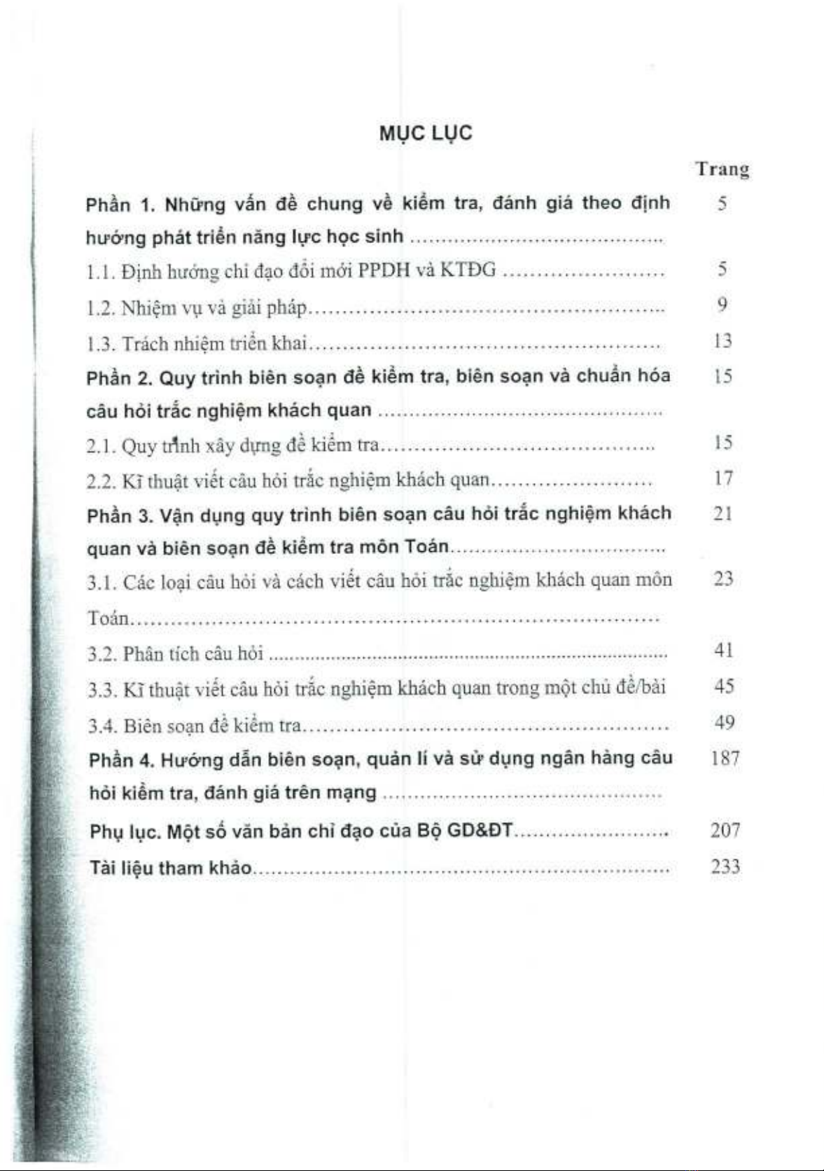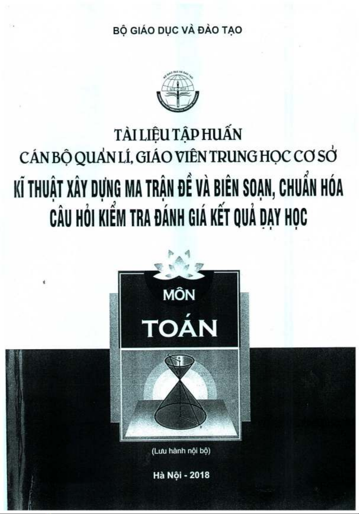 Tài liệu tập huấn cán bộ quản lí, giáo viên trung học cơ sở kĩ thuật xây dựng ma trận đề kiểm tra và biên soạn, chuẩn hóa câu hỏi đánh giá kết quả dạy học môn Toán