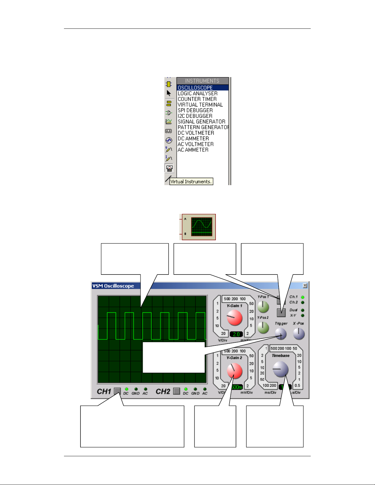 Vị trí của Oscilloscope trong cửa sổ thiết kế như sau: