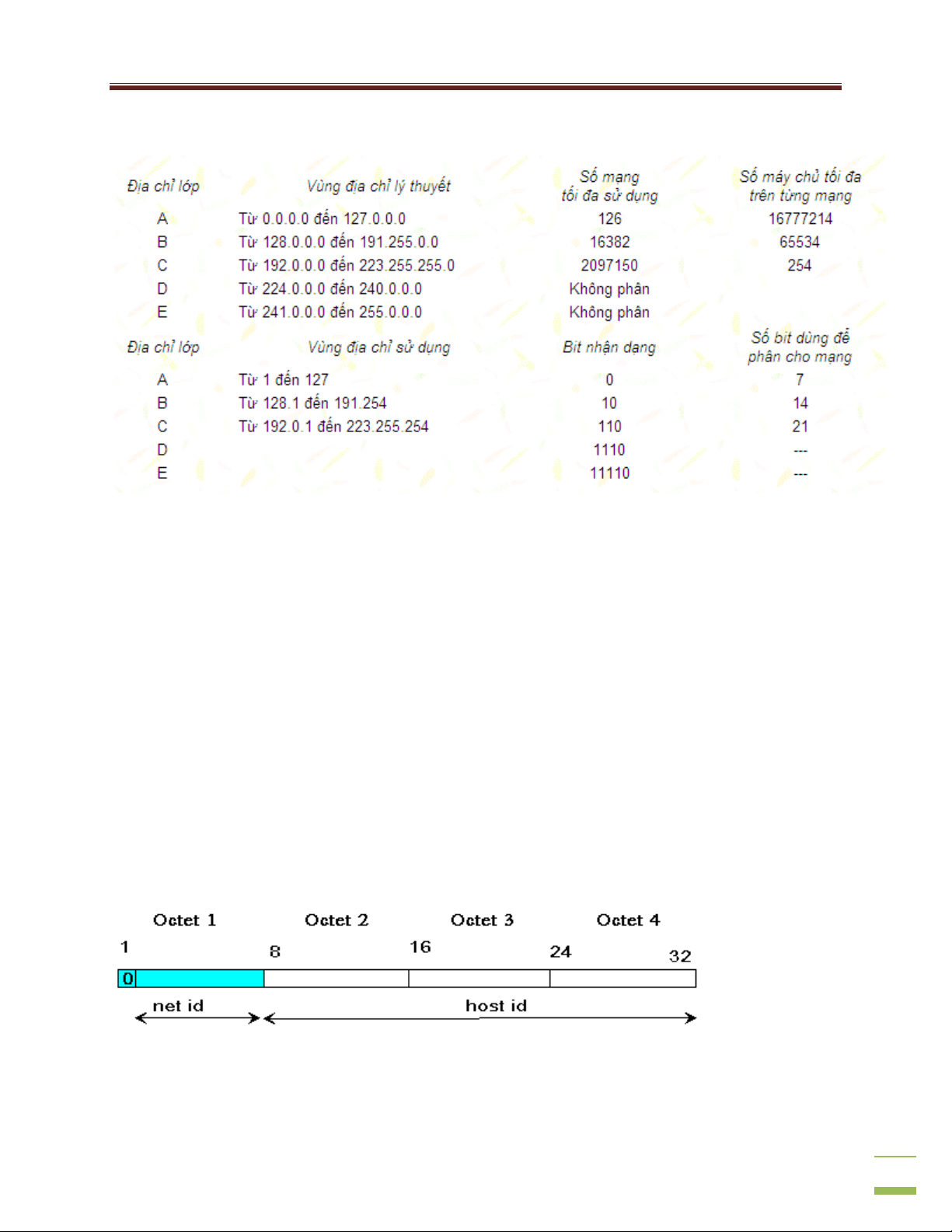 • Địa chỉ lớp A: Địa chỉ mạng ít và địa chỉ máy chủ trên từng mạng nhiều.