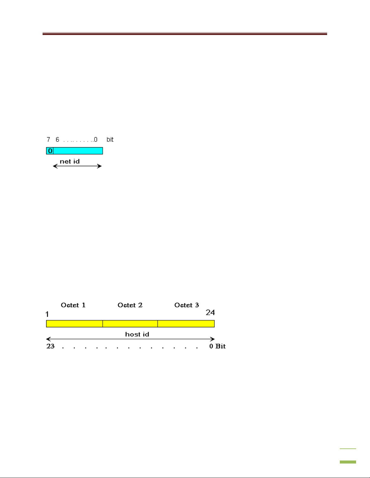 • 7 bit còn lại trong Octet thứ nhất dành cho địa chỉ mạng.