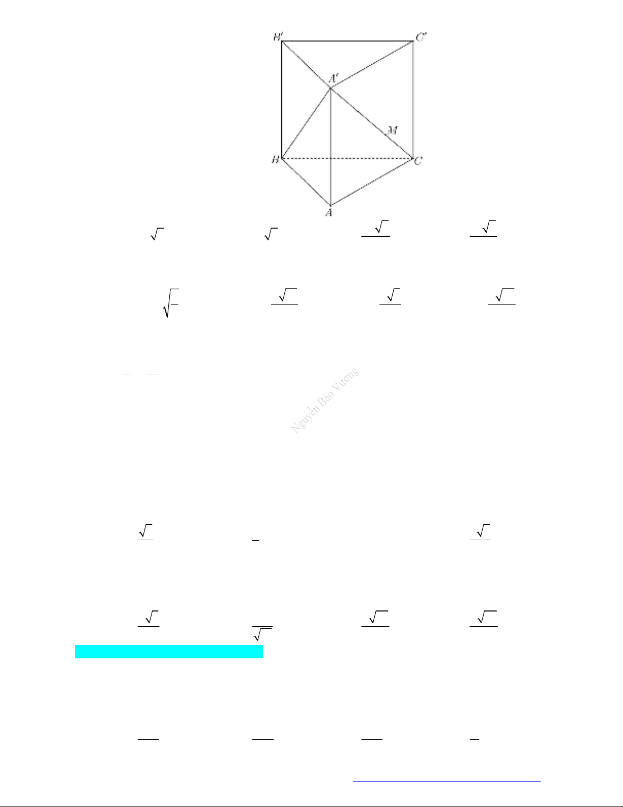 Câu 4. (THPT Kinh Môn - Hải Dương - 2021) Cho lăng trụ