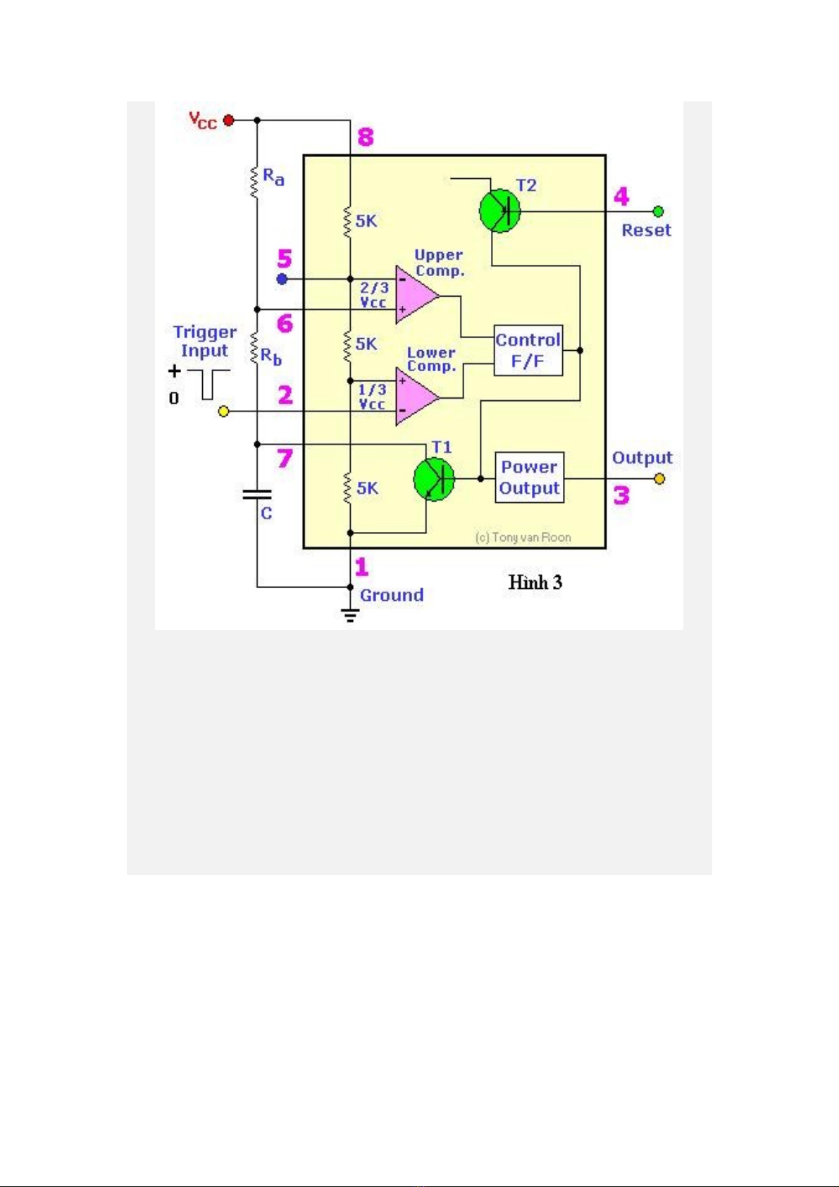 Nhìn trên hình 3 ta th y c u tr c c a 555 nó t ng đ ng v i h n 20 transitor , 15 đi n tr và 2 diode vàấ ấ ứ ủ ươ ươ ớ ơ ệ ở