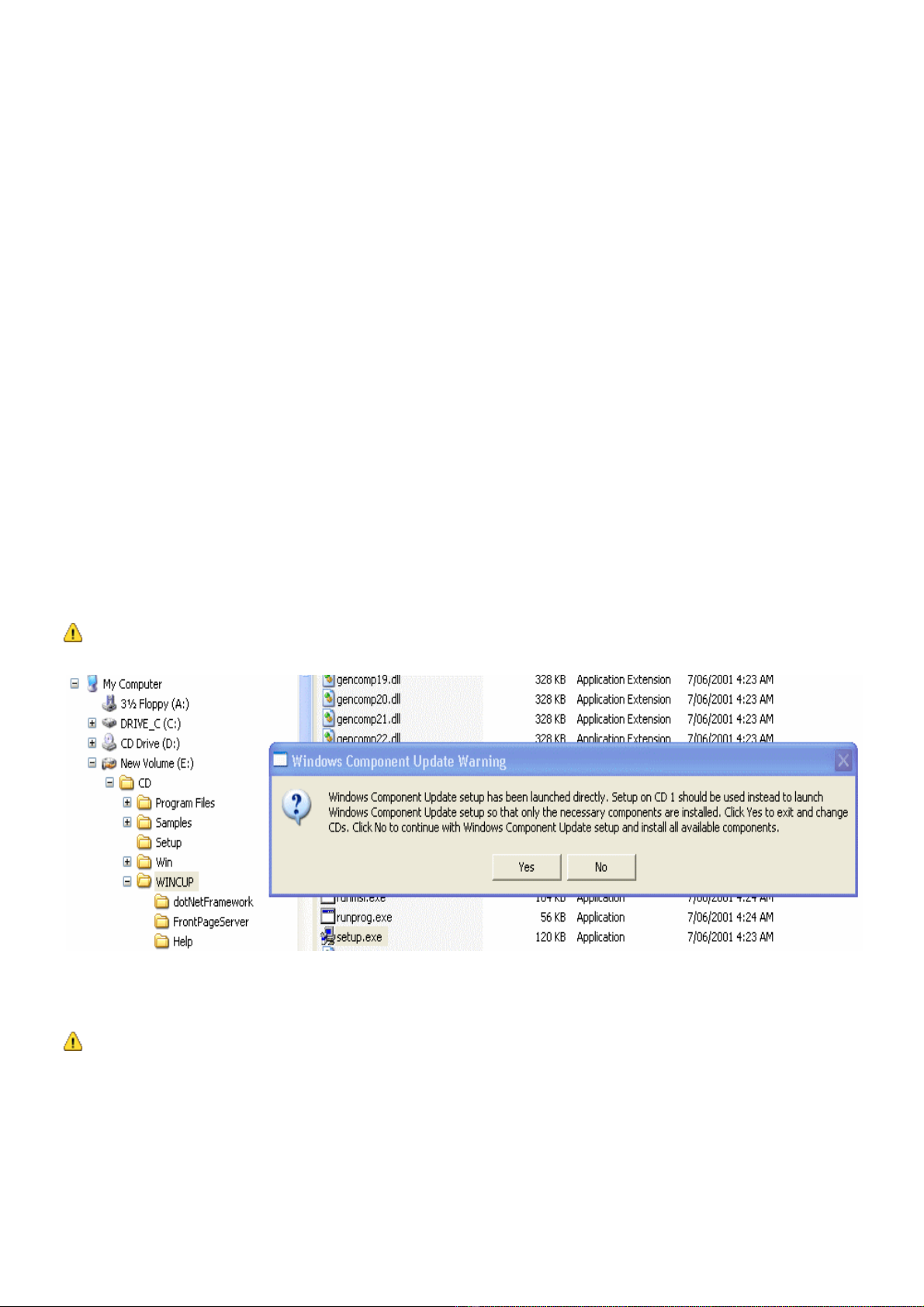 Kế đó, trước hết chạy Setup.exe của Windows Component Update như dưới đây, click No khi Warning dialog hiện