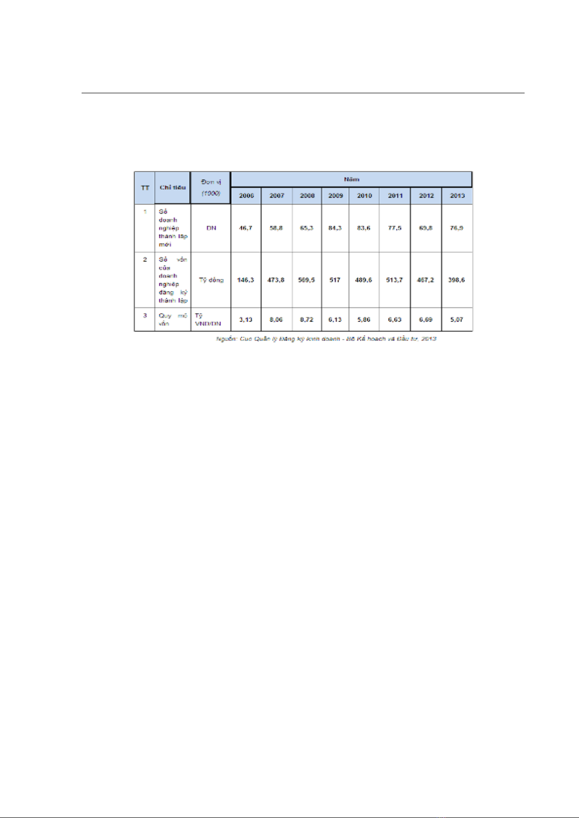 Bảng 2: Tình hình đăng ký thành lập doanh nghiệp 2006-2013