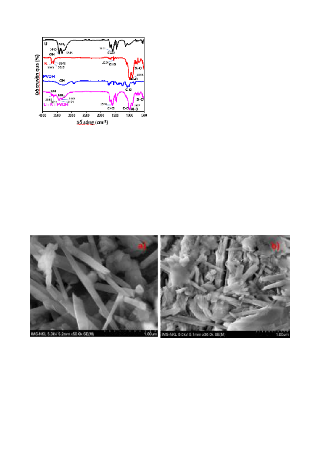 Hình 3. Phổ IR của urea, kaolinit và U-K-PVOH