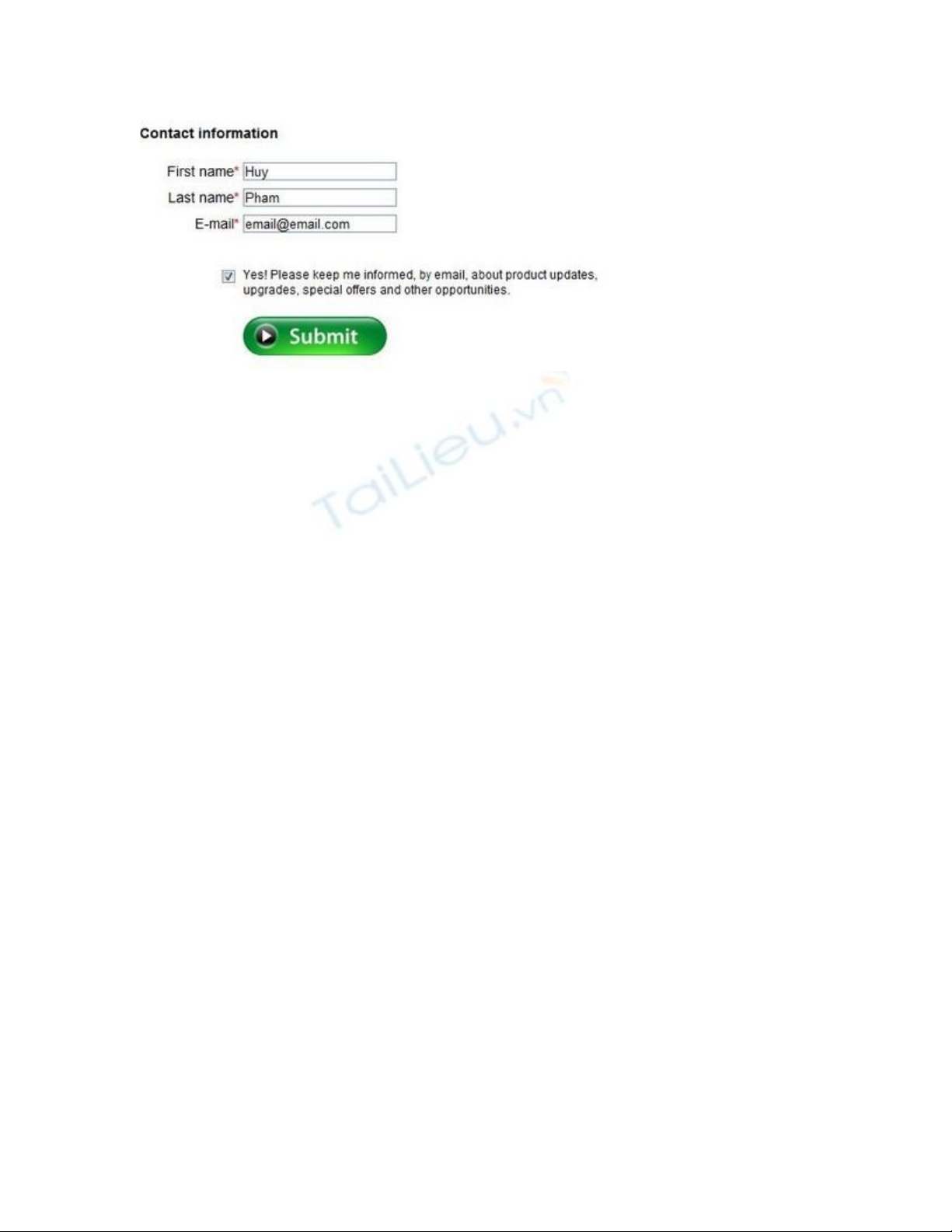 họ, tên vào form đăng ký và nhấn nút Submit.