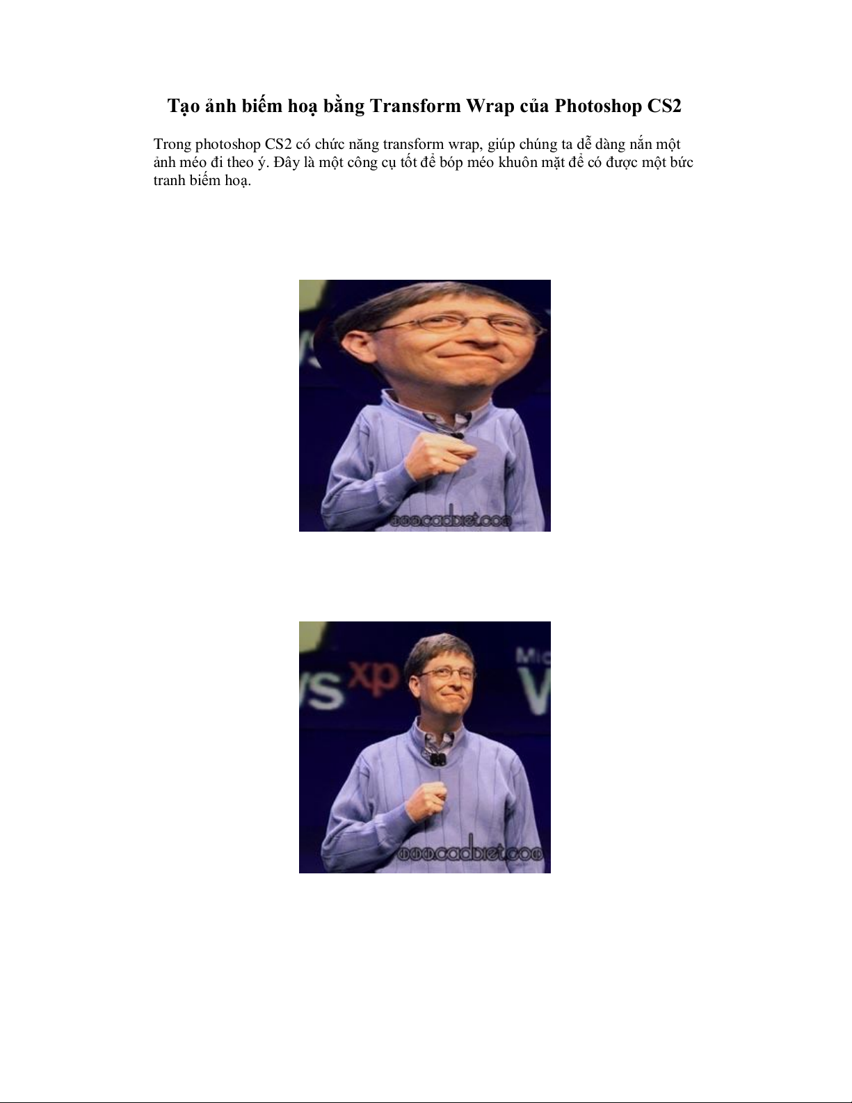 Tạo ảnh biếm hoạ bằng Transform Wrap của Photoshop CS2