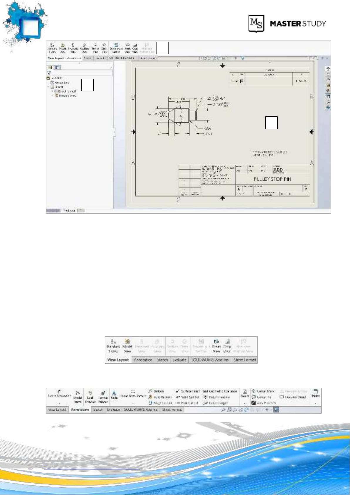 Môi trường tạo bản vẽ trong Solidworks gồm các phần chính như sau: