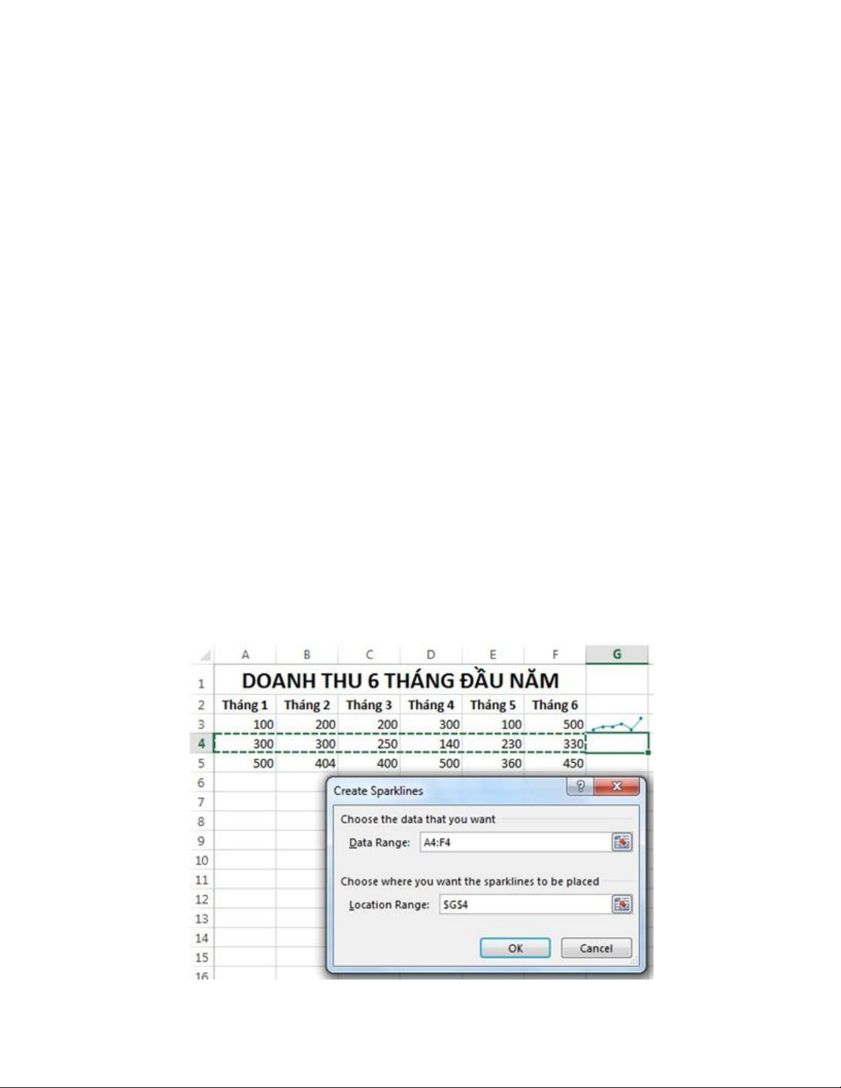 Tính năng Sparkline trên Excel 2013 cho phép bạn tạo biểu đồ thể hiện sự