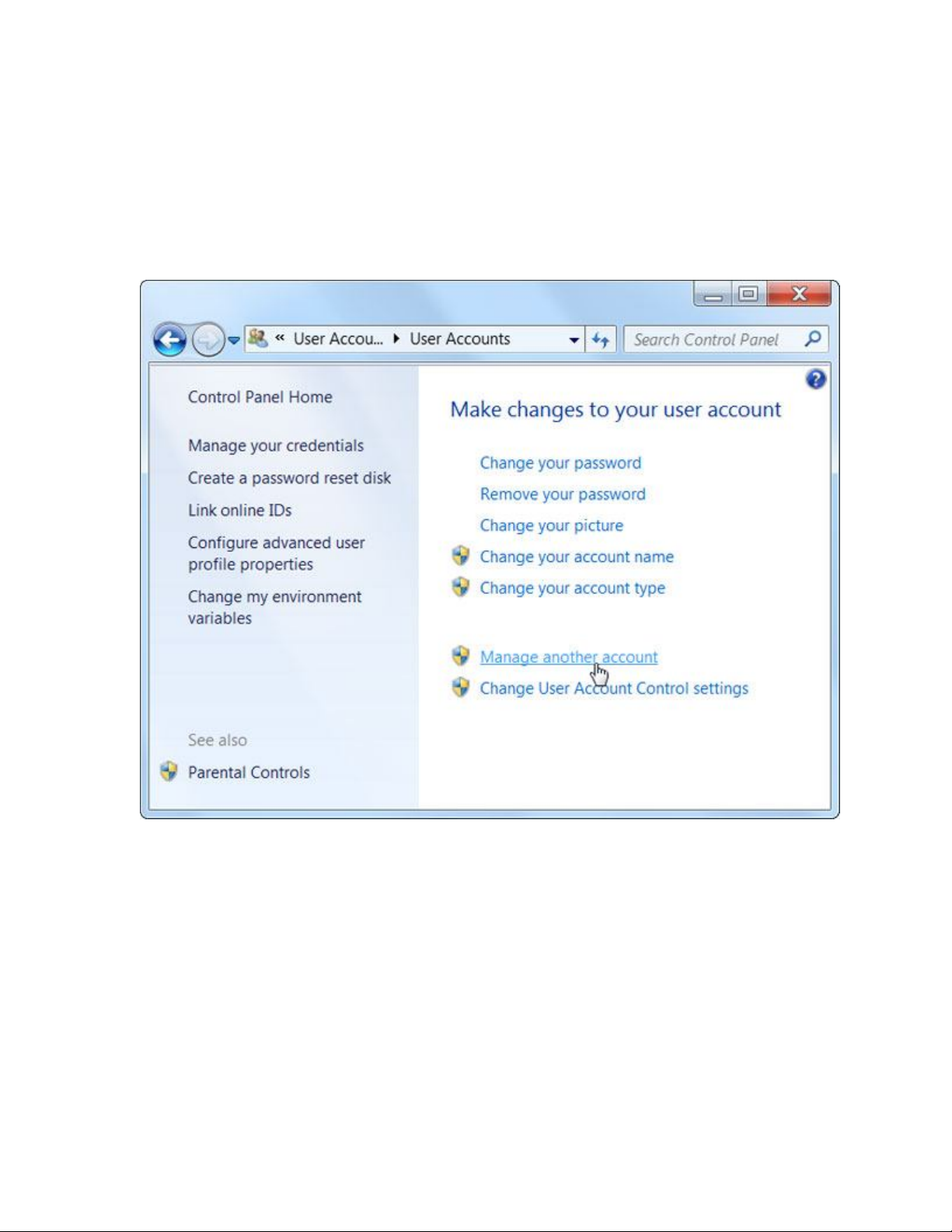 Safety và chọn User Accounts. Nhấn vào đường dẫn Manage another