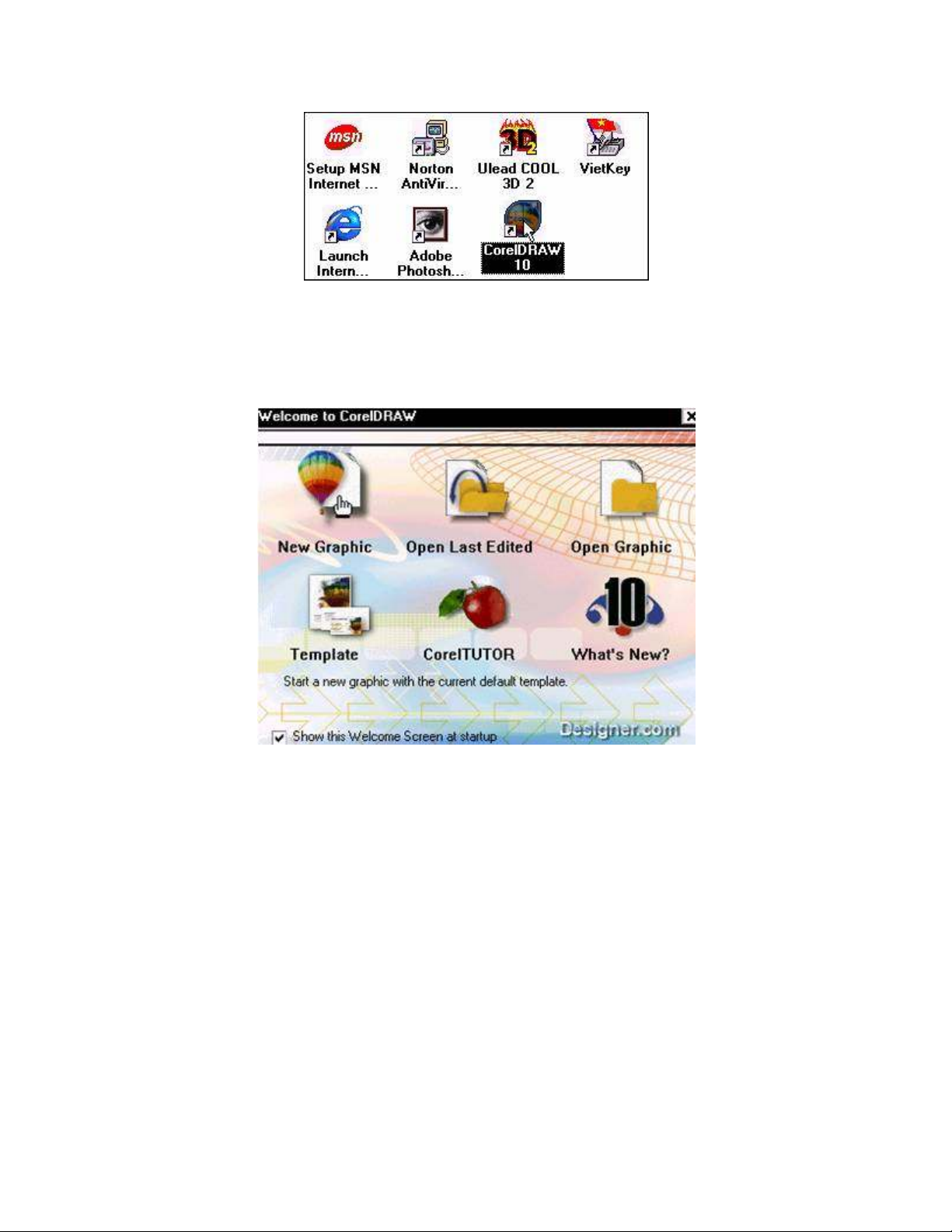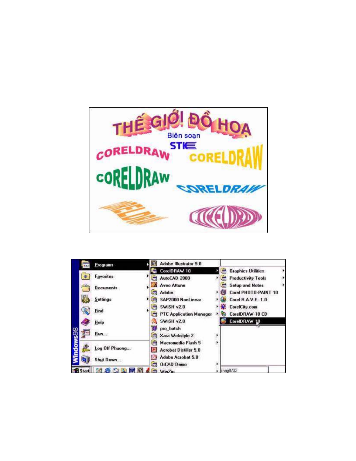 Khởi động CorelDraw 10, trên màn hình chọn Start > Programs > CorelDraw 10 >