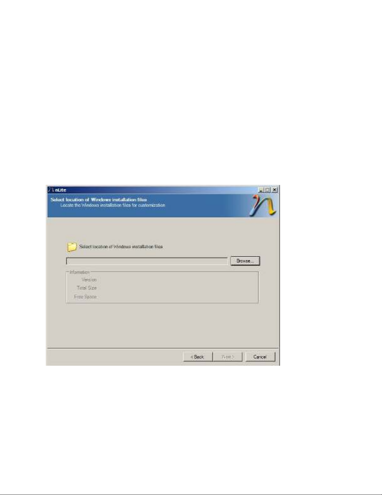 Khởi động nLite. Click Next cho đến khi xuất hiện màn hình sau.