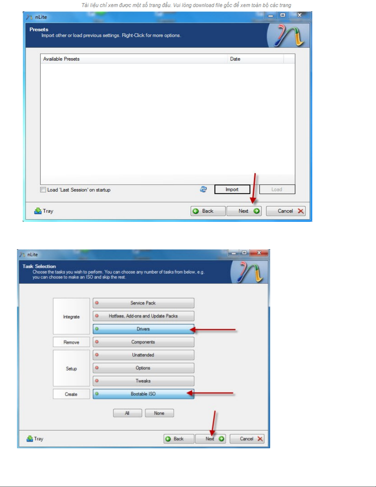 - Phần mềm nLite phiên bản
