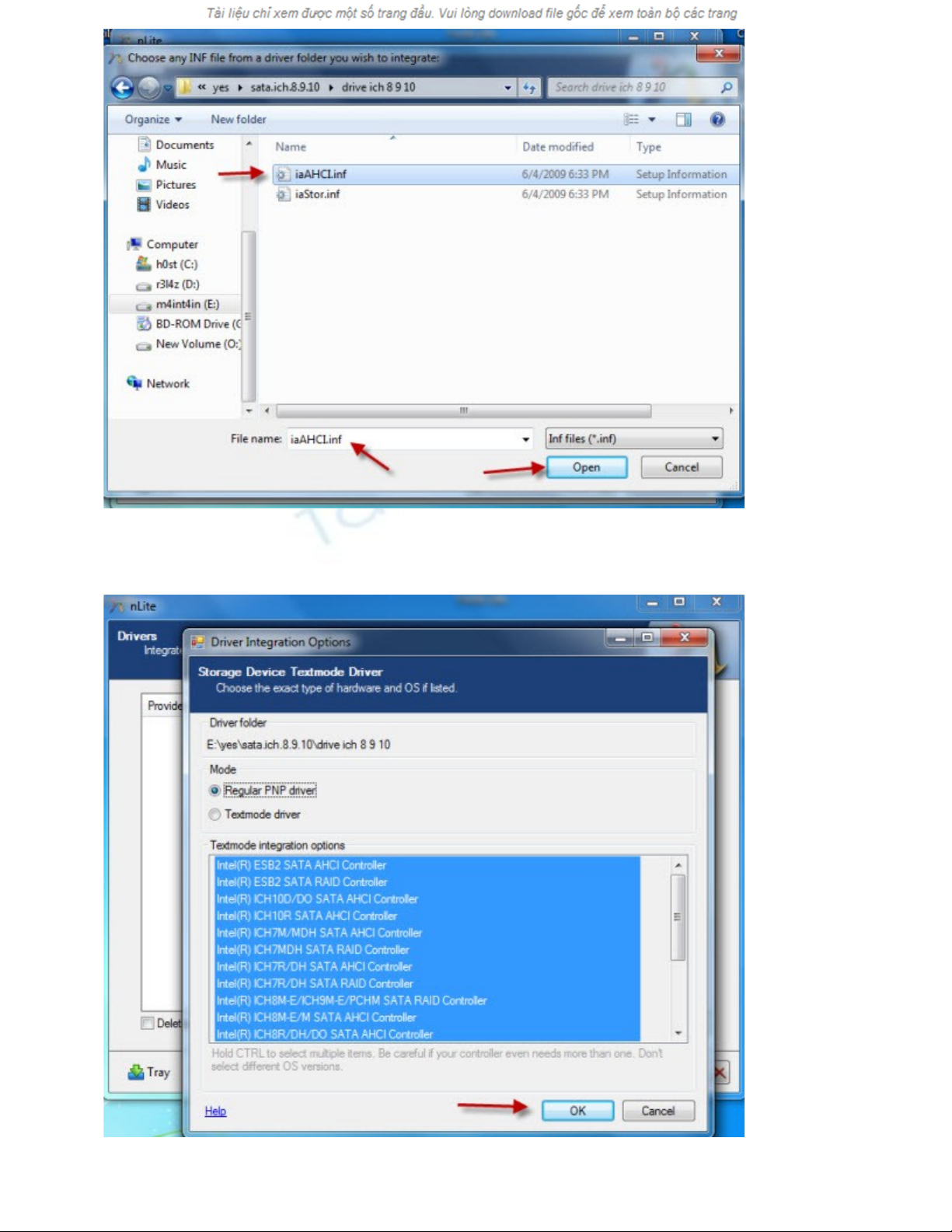 - Các bạn có thể sử dụng bất cứ lựa chọn nào, sau đó chỉ đường dẫn đến thư mục chứa driver ICH (tải về máy