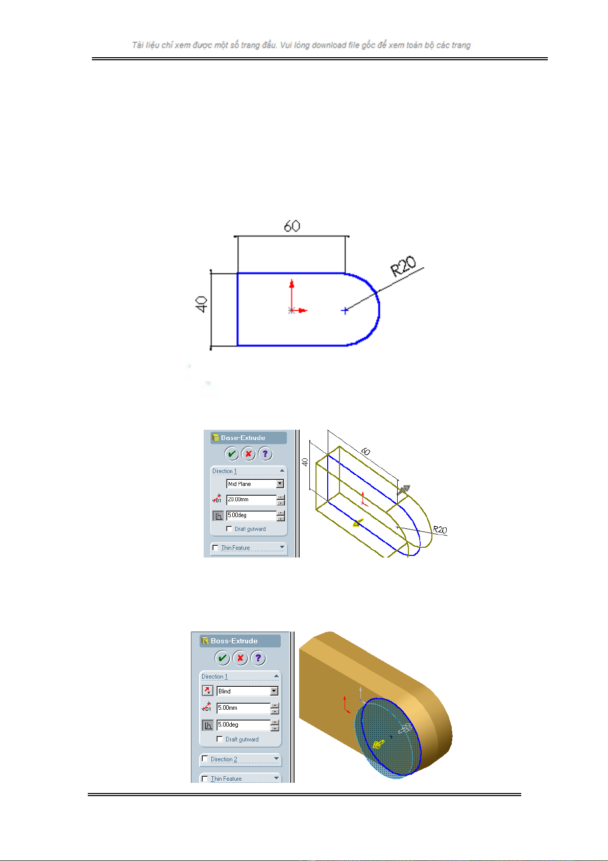 d Sau ®ã kÝch ho¹t lÖnh Extruded Boss/Base, ®Æt c¸c thuéc tÝnh nh− ë h×nh