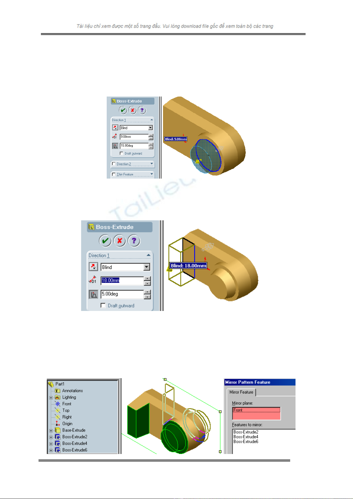 chän Boss-Extrude 2, Boss-Extrude 3, Boss-Extrude 6 ®Ó lµm c¸c ®èi
