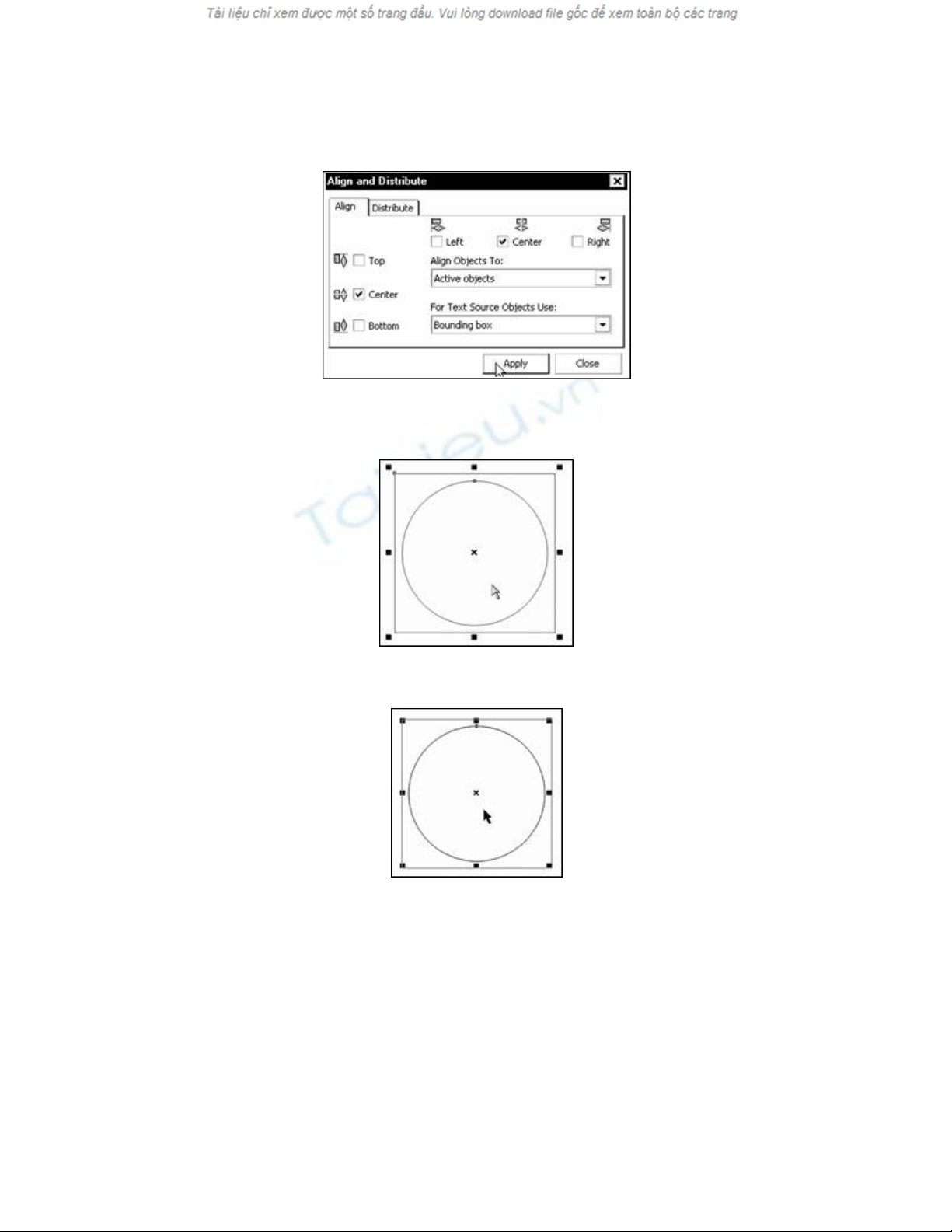 Hộp thoại Align and Distrubute xuất hiện, đánh dấu kiểm vào 2 ô Center. Nhấp Apply chấp
