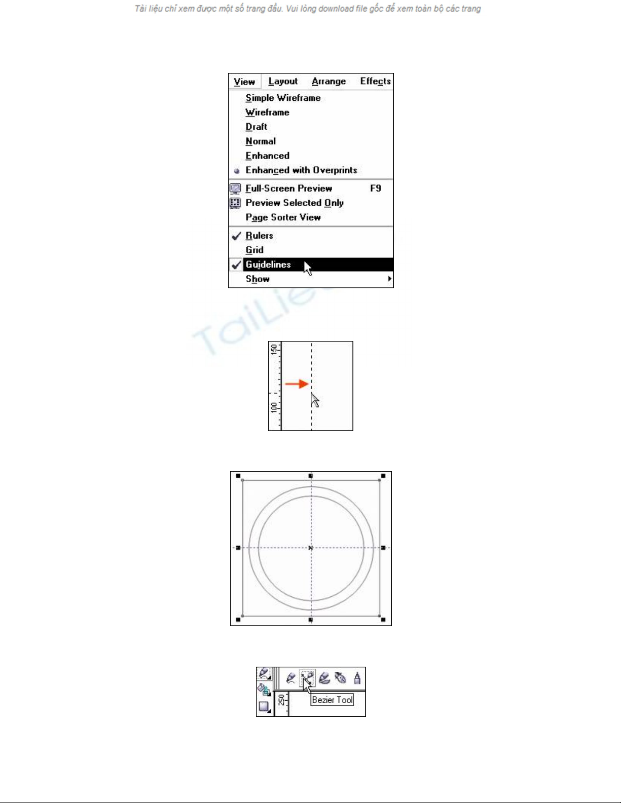 Tạo đường giống bằng cách bạn nhấp chọn trên thanh thước và giữ nguyên chuột kéo vào