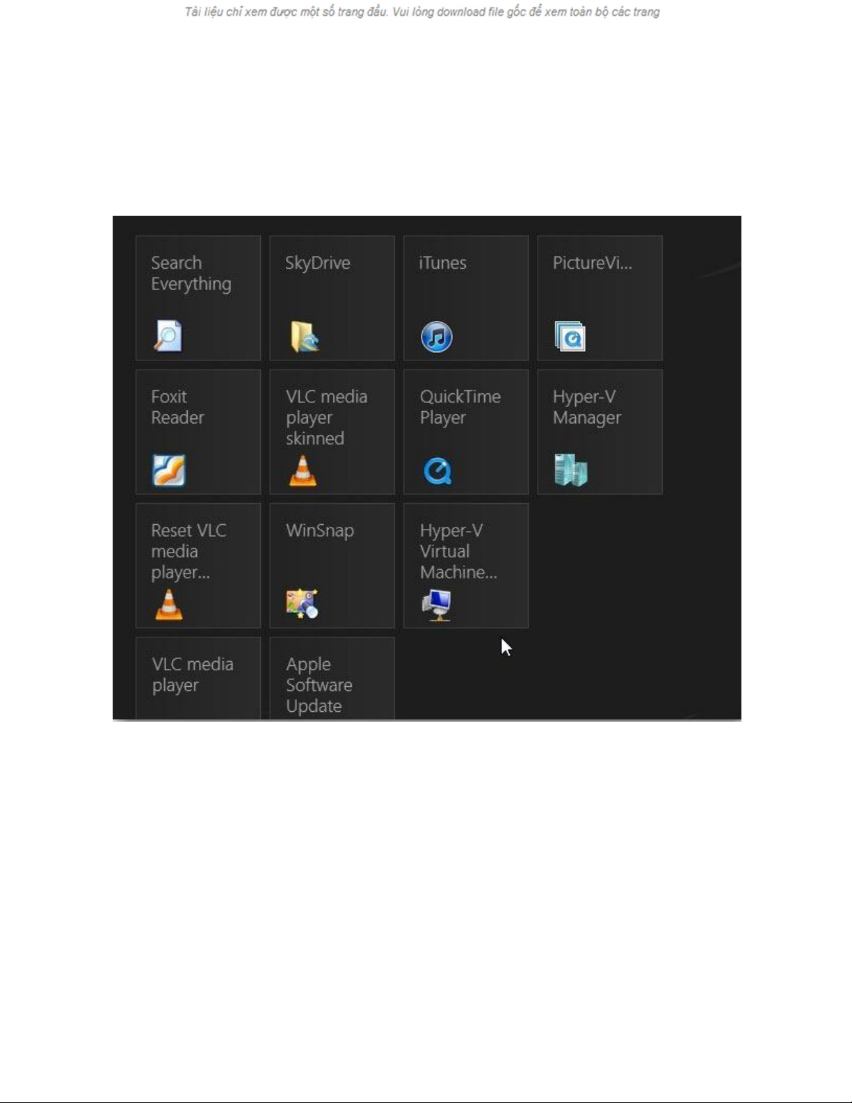 bằng cách, t màn hình Metro Start, tra Hyper-V kích vào biểu tượng