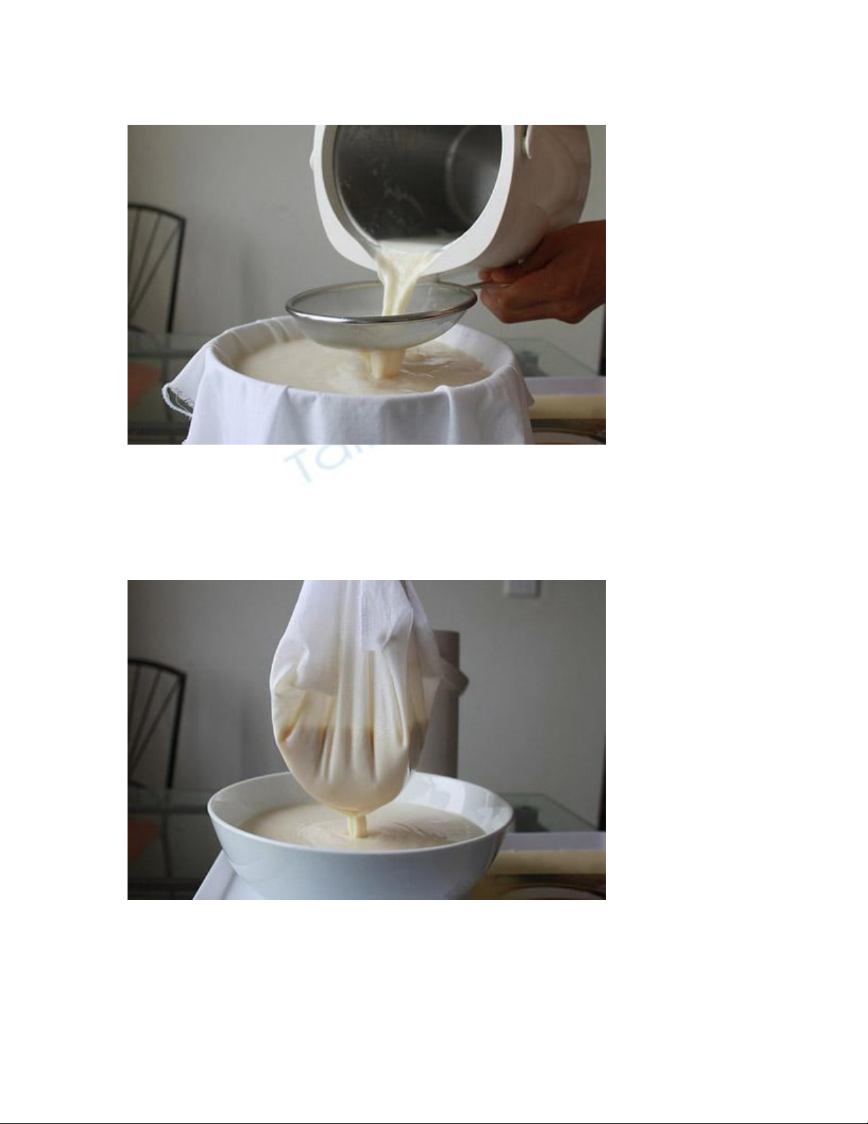 Bước 3: Đặt vải lọc lên một chiếc nồi, đổ nước đậu vừa hòa tan vào vải lọc.