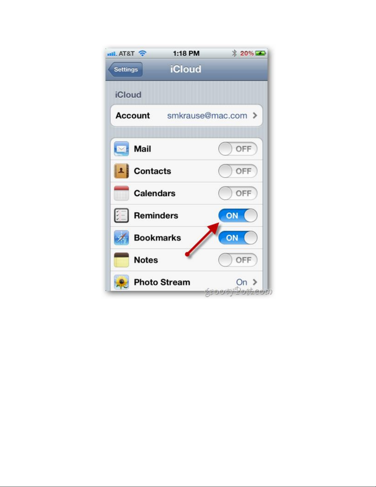 Chuyển chế độ hoạt động của Reminders thành ON: