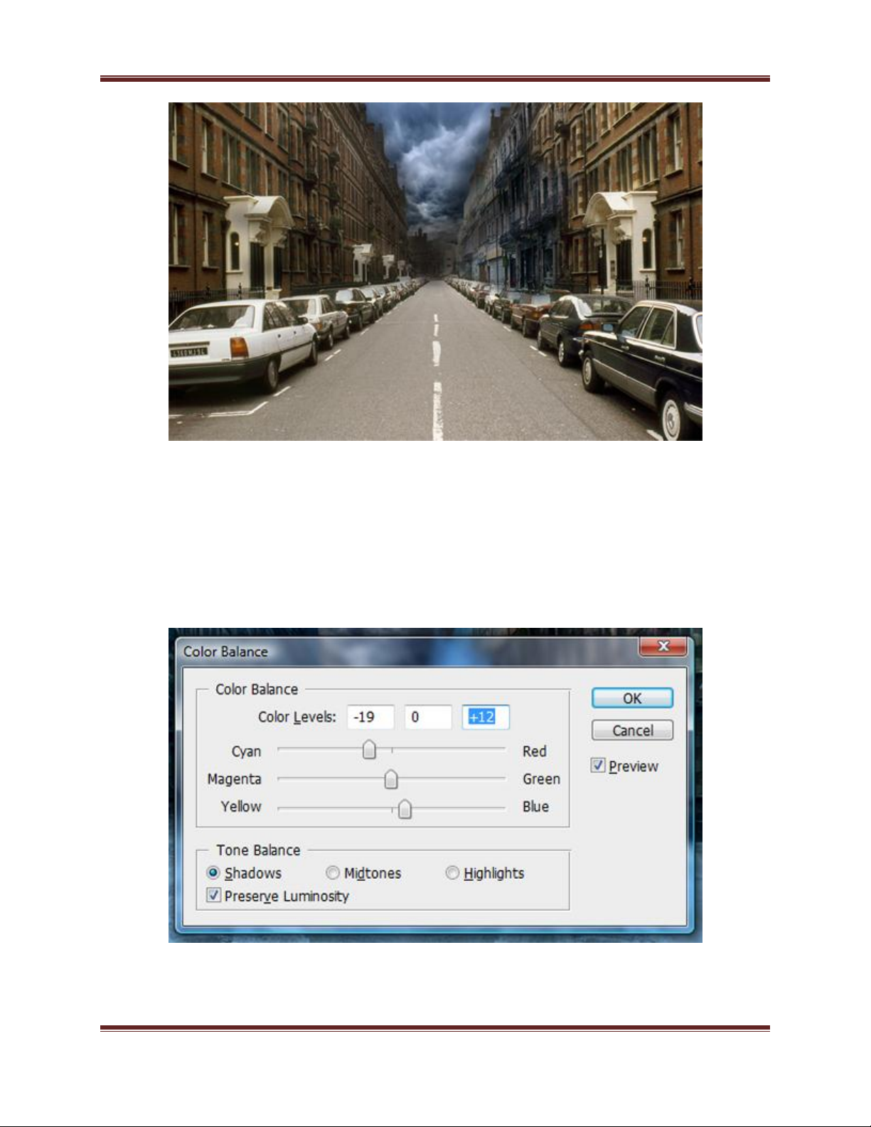 Color Balance, lần lượt thiết lập giá trị cho các