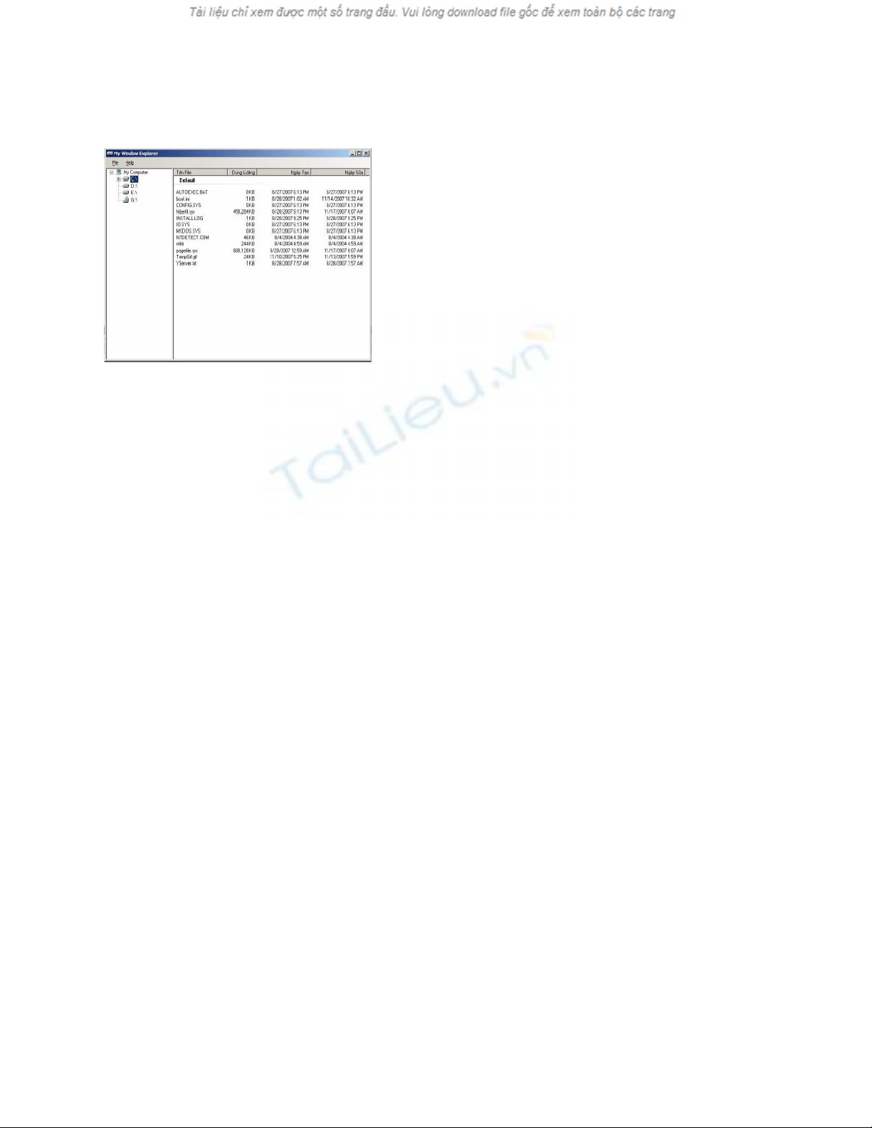 bố vào Listview. Lớp FileInfo lấy các thông tin chi tiết về File như Dung lượng, ngày tạo, ngày