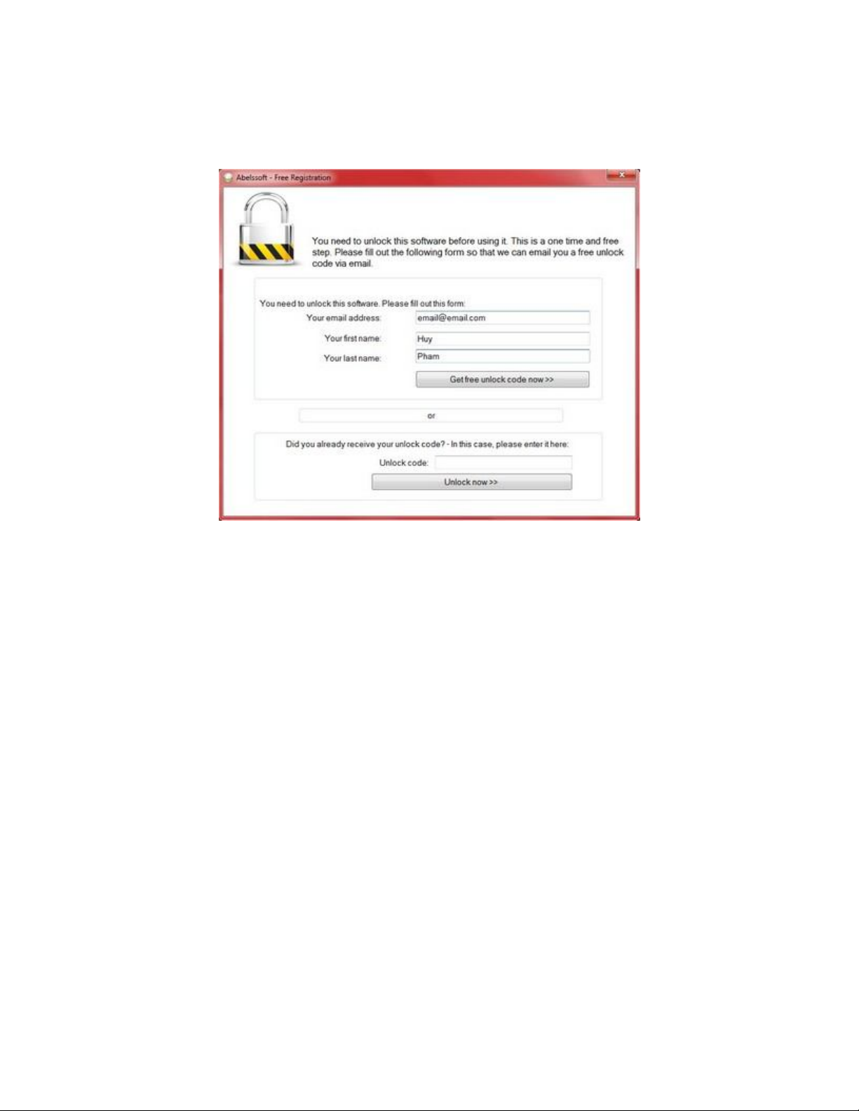 của phần mềm. Điền mã này vào khung ‘Unlock