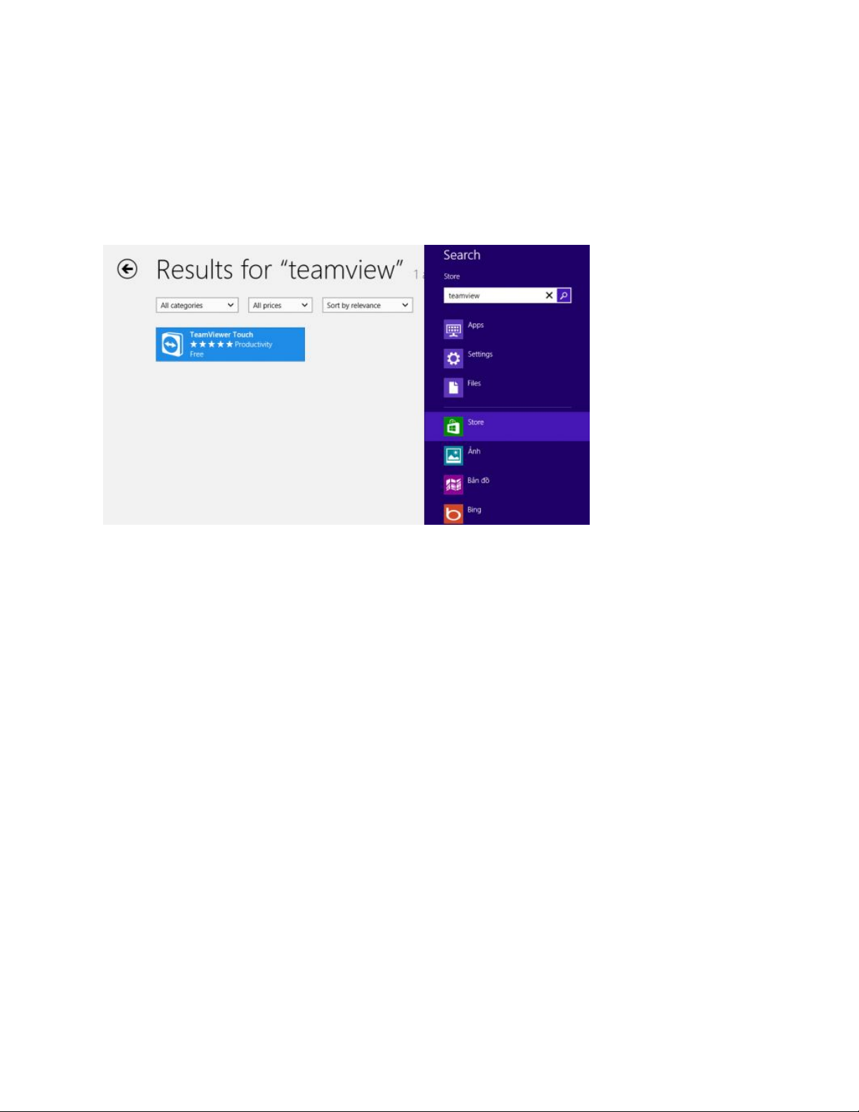 Store và gõ từ khóa Teamview vào khung tìm kiếm và thực thao tác tìm.