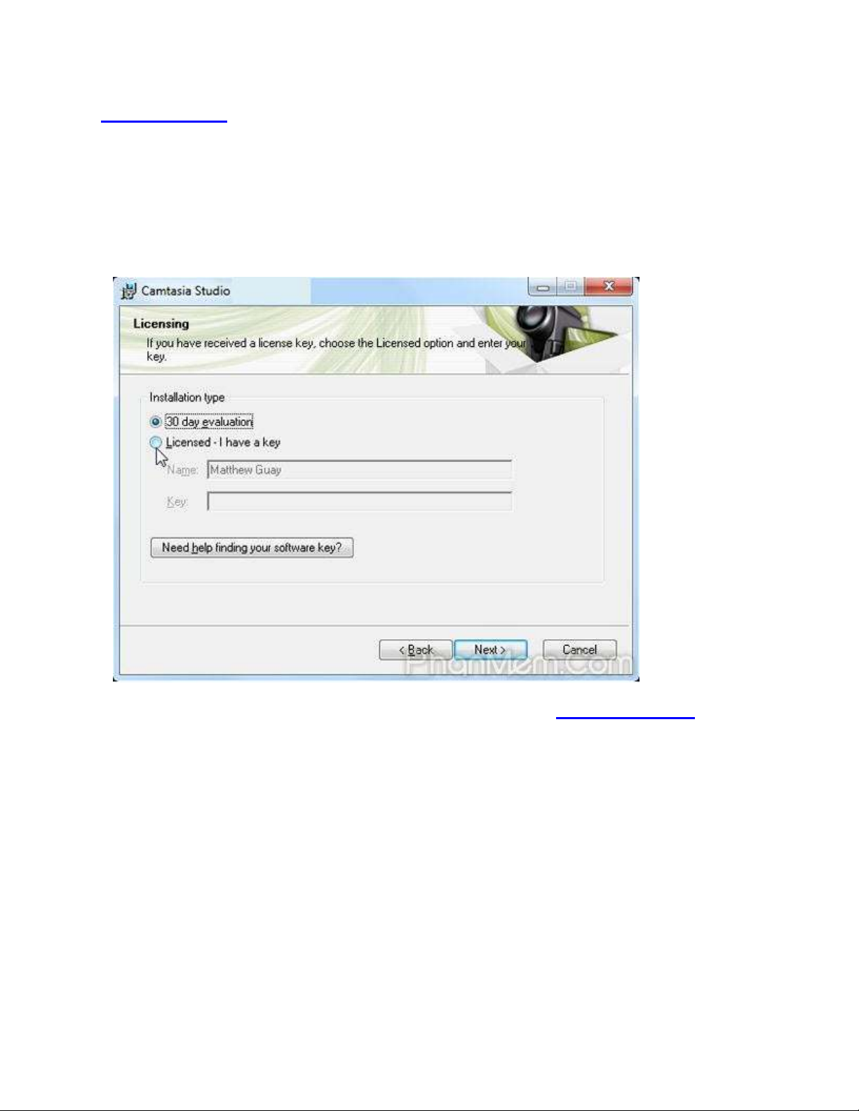 Đến bước đăng ký kích hoạt giấy phép, nếu bạn có giấy phép thì nhập vào. Còn
