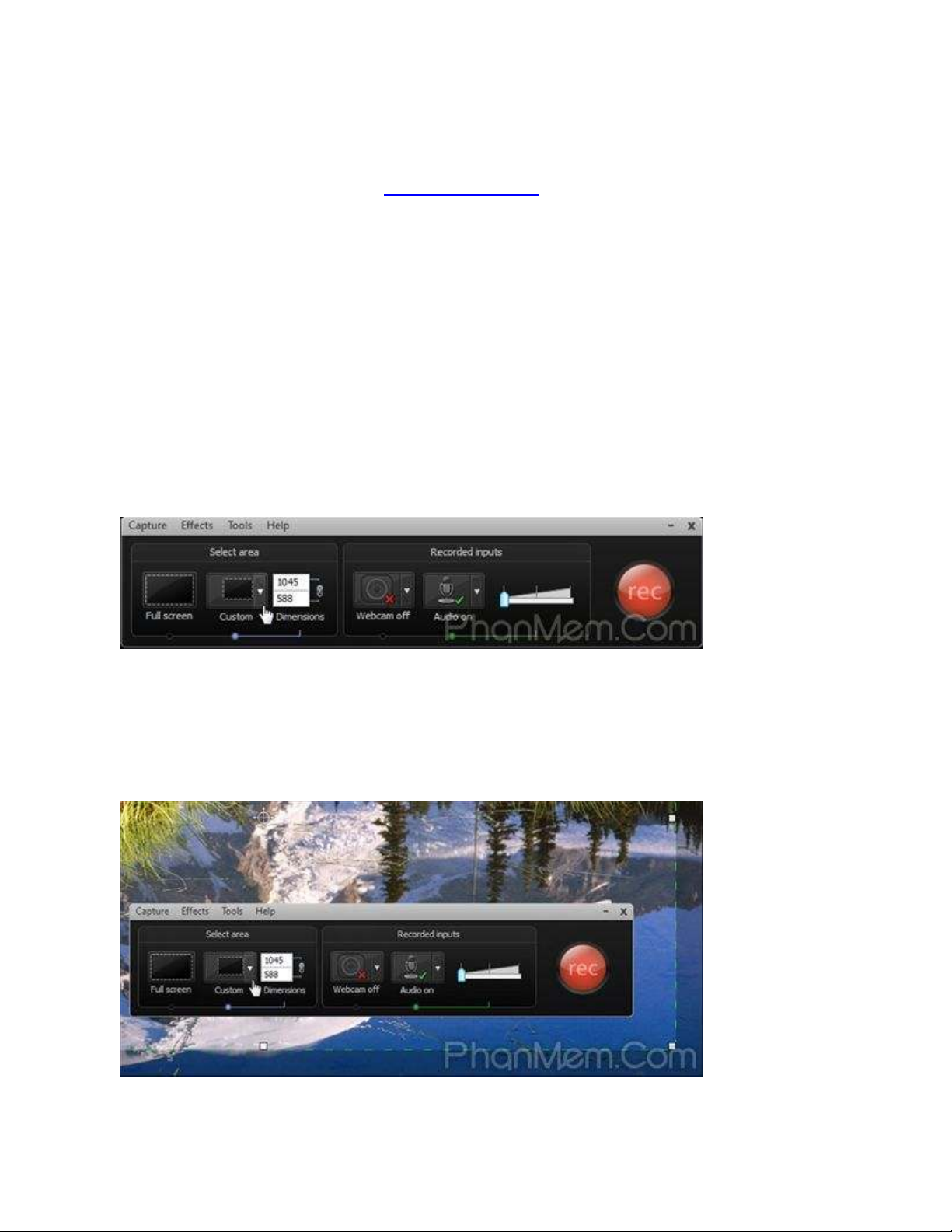 cách bấm và di chuột qua toàn bộ diện tích cần ghi hình, sau đó bấm Rec: