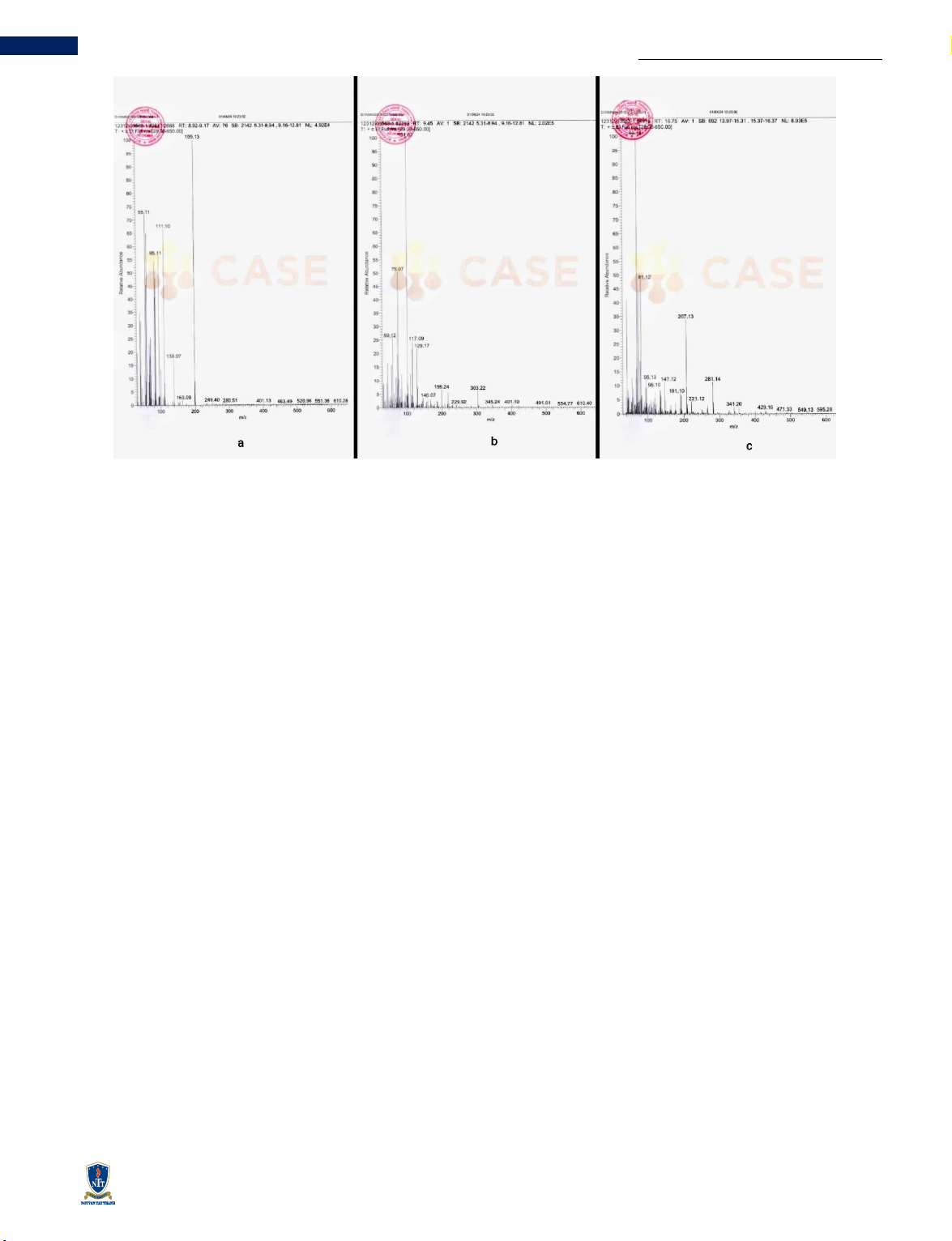 Hình 2 Phổ GC–MS a) hợp chất thứ 1; b) hợp chất thứ 2; c) hợp chất thứ 6 trong cao chiết hoa trang vàng