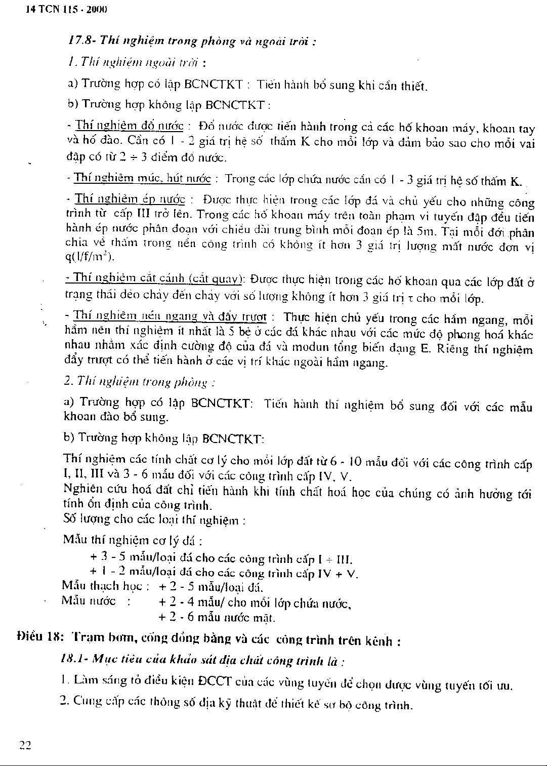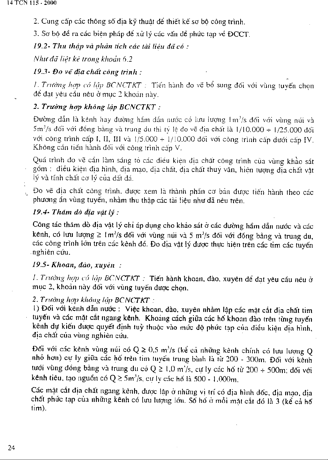 14 TCN 115 - 2000 Thành phần, nội dung và khối lượng khảo sát địa chất trong các giai đoạn lập dự án và thiết kê công trình thủy lợi part 5
