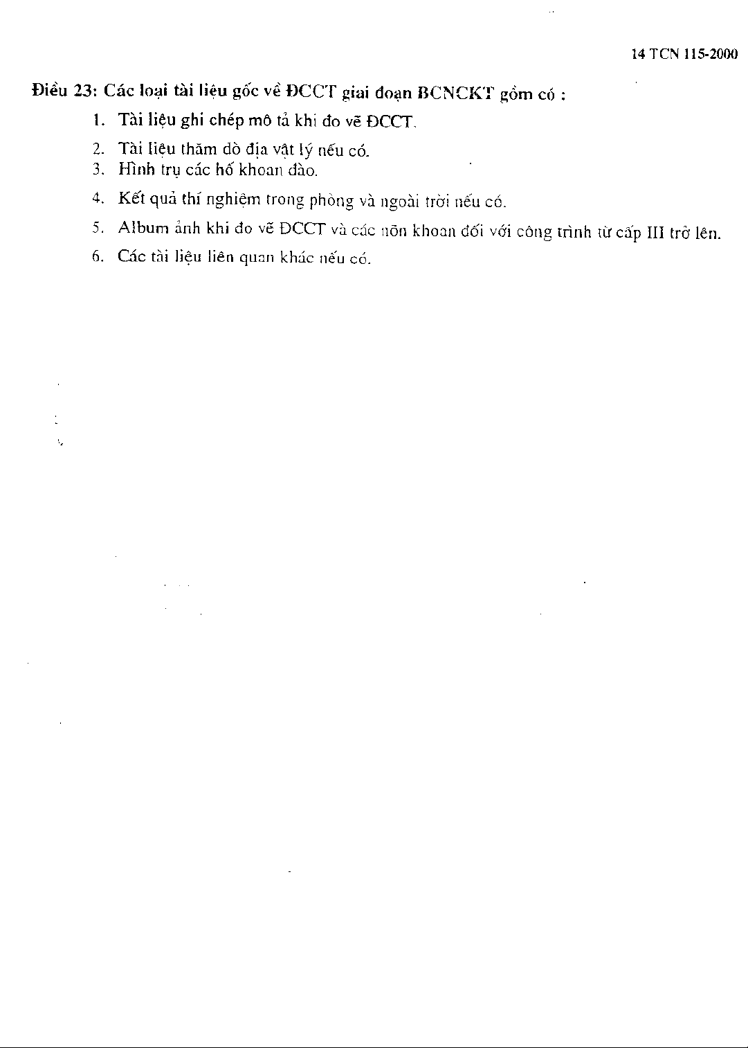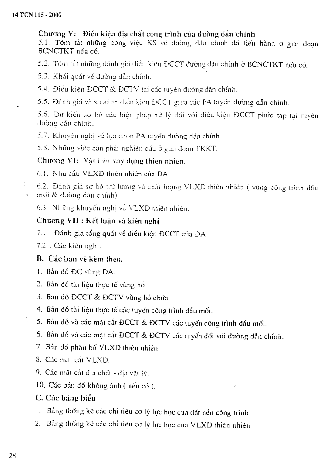 14 TCN 115 - 2000 Thành phần, nội dung và khối lượng khảo sát địa chất trong các giai đoạn lập dự án và thiết kê công trình thủy lợi part 6