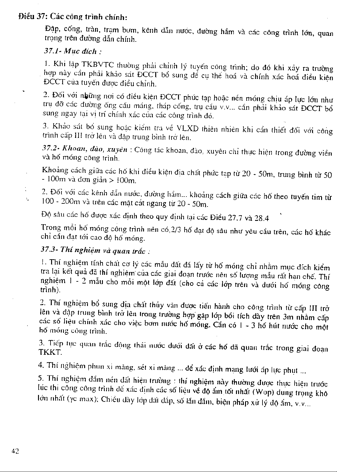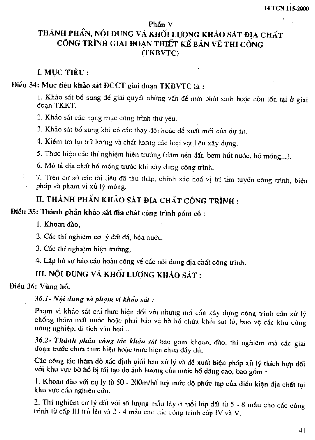 14 TCN 115 - 2000 Thành phần, nội dung và khối lượng khảo sát địa chất trong các giai đoạn lập dự án và thiết kê công trình thủy lợi part 8