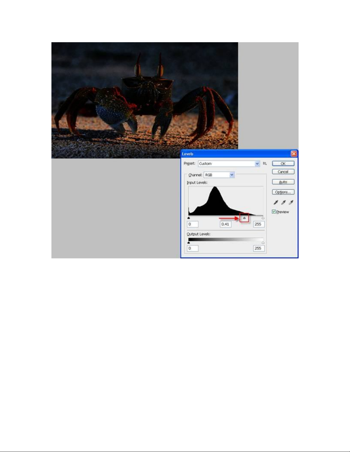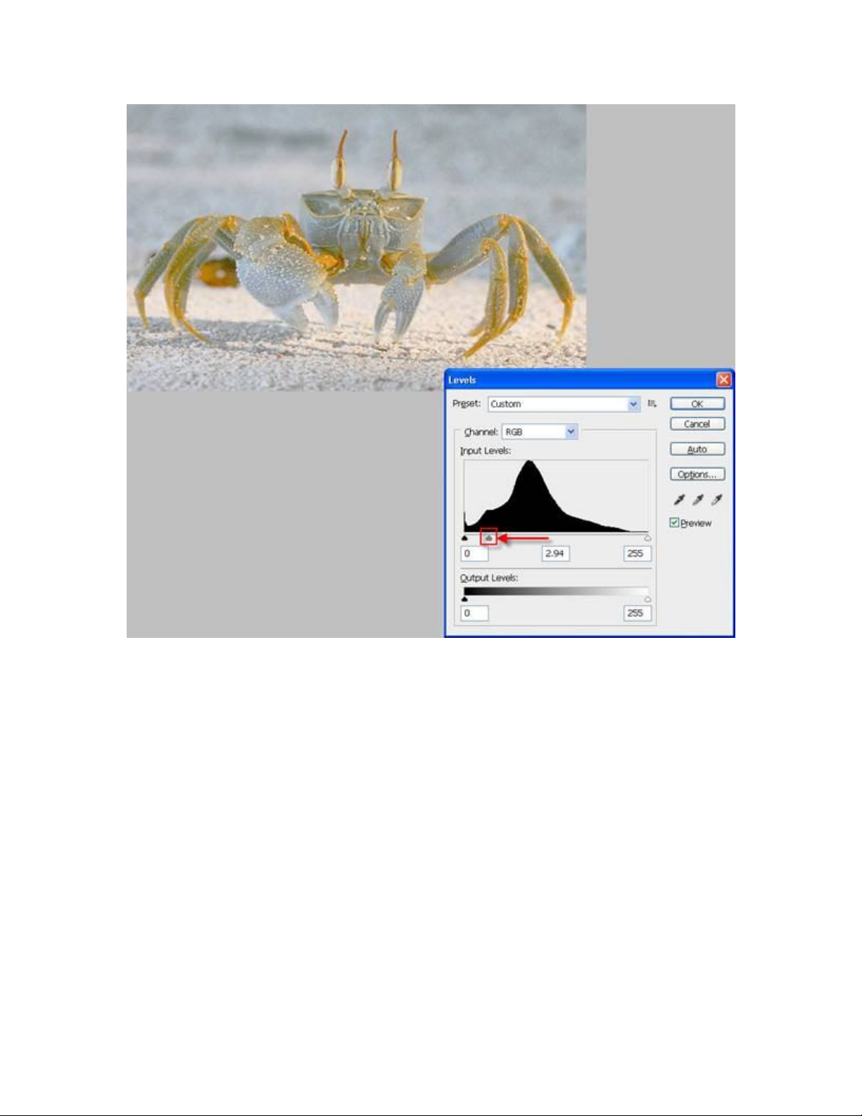 Bước 4: Nhấn Ctrl+L, kéo nút tam giác màu xám qua phải để làm tối hình lại,
