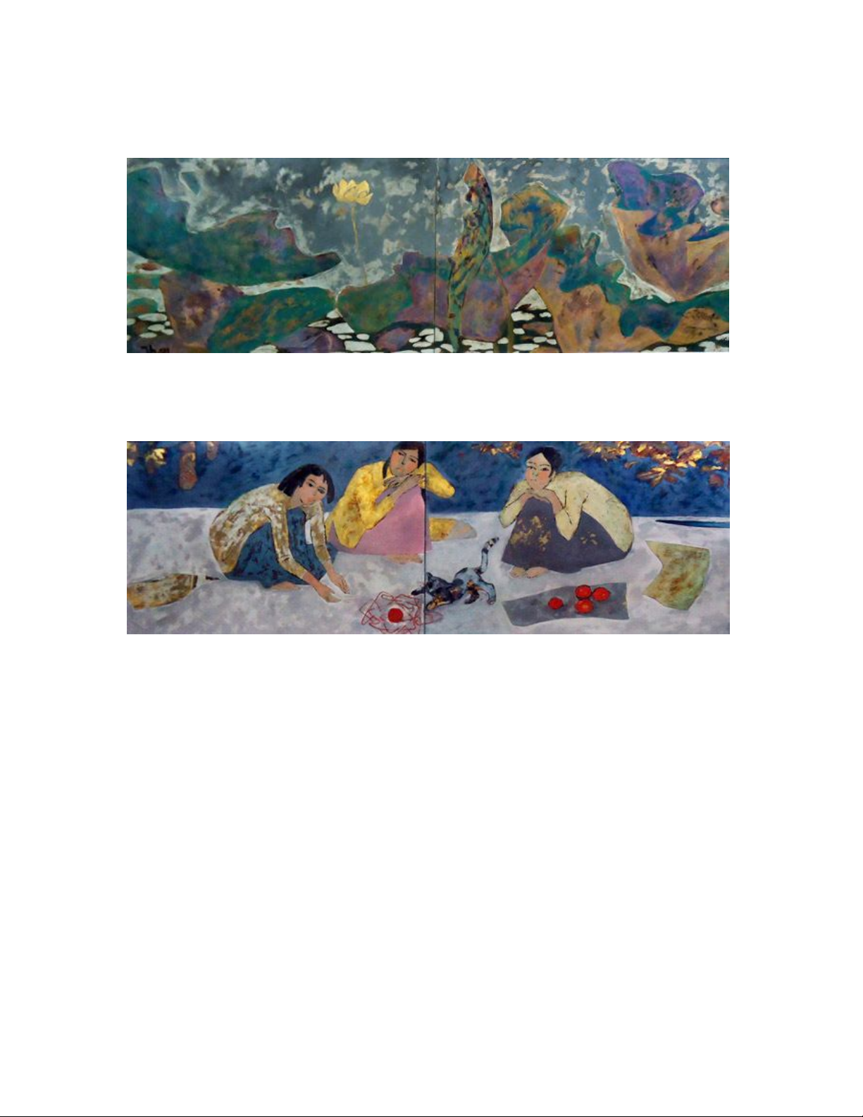 "Sen 1", Nguyễn Thành Quốc Thạnh, sơn mài, 40 x 120cm