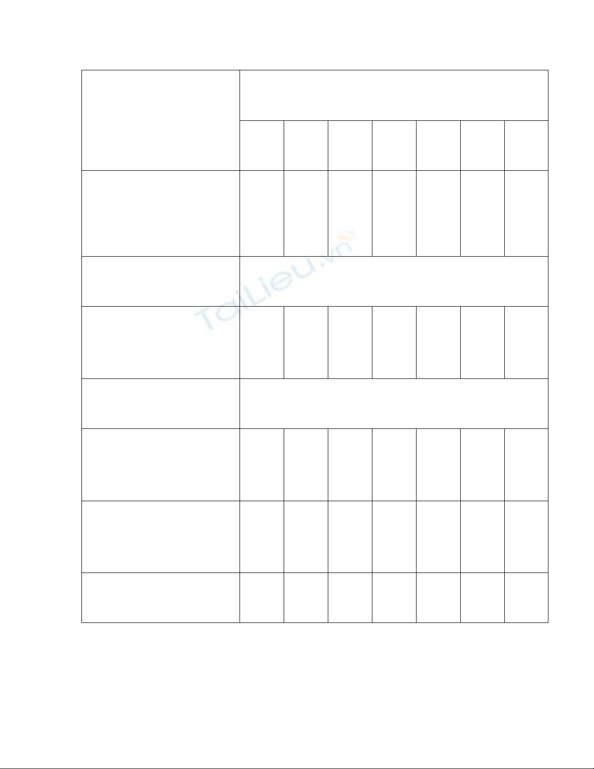 Chuẩn bị thang mẫu theo bảng sau: